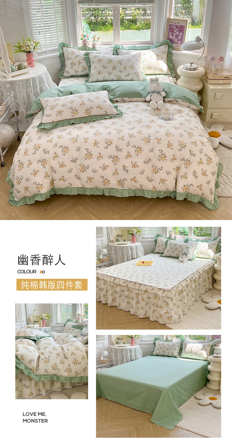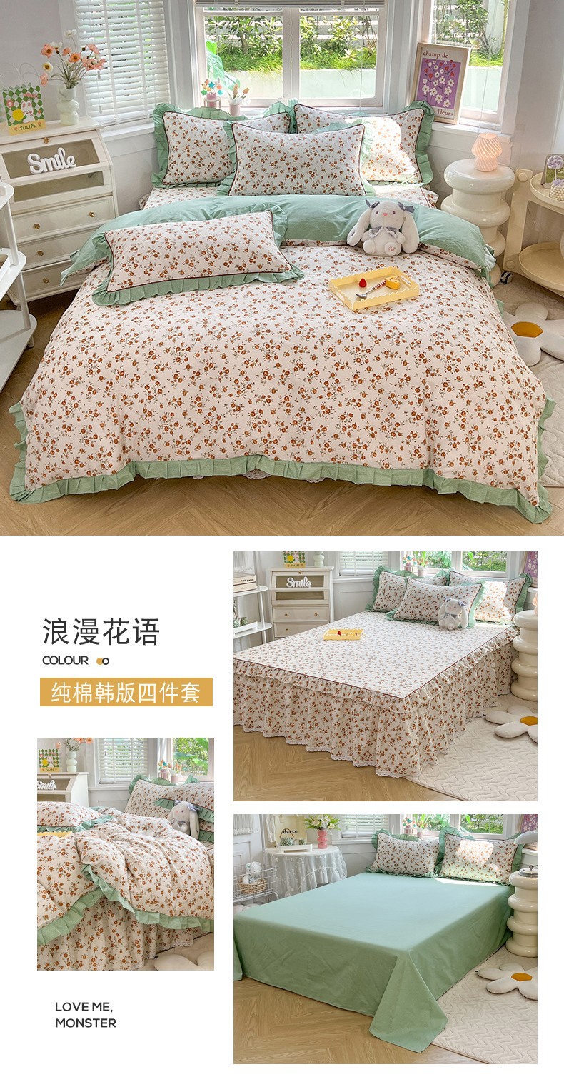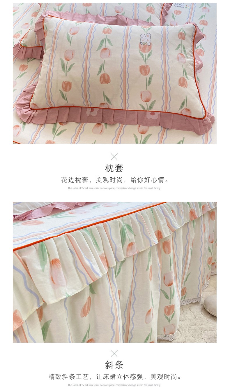 (总)美达家纺 2025新款全棉纯棉AB版蕾丝小花边单层床裙四件套,解语花,南湘,沁雨花叶,悦棠