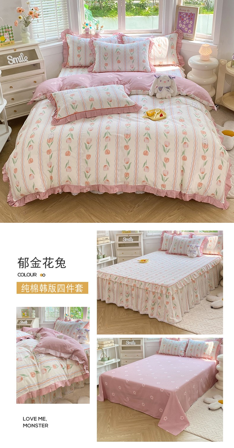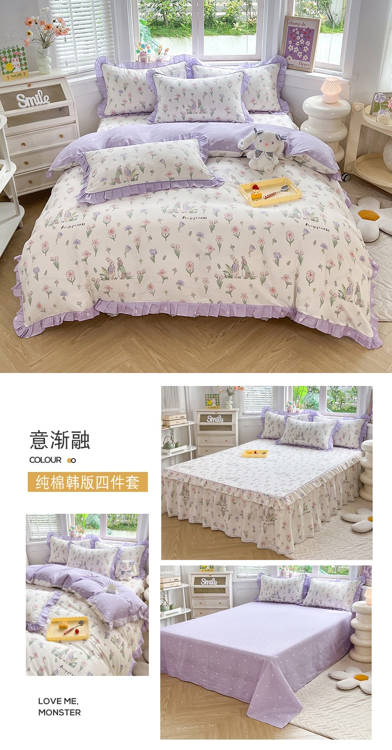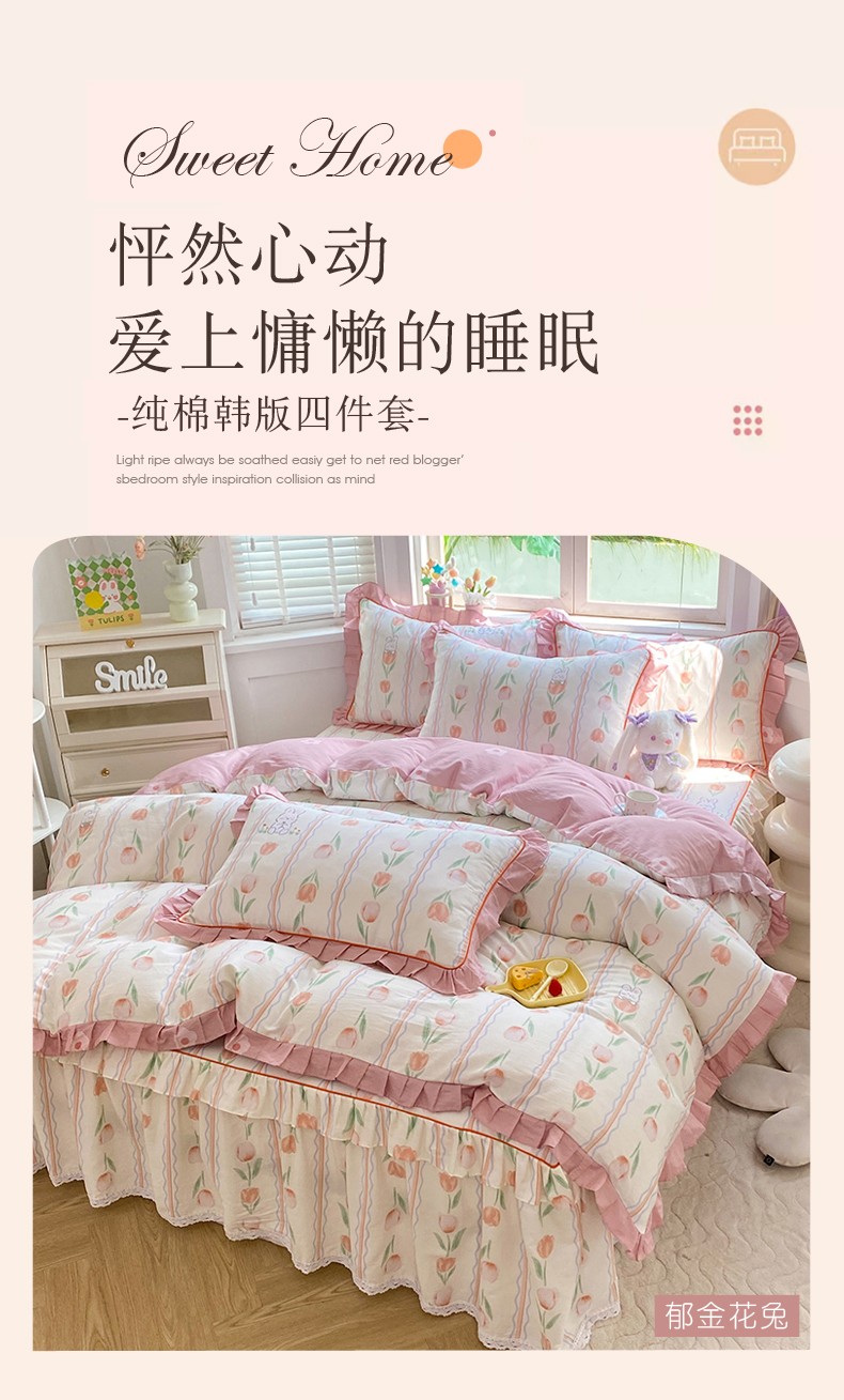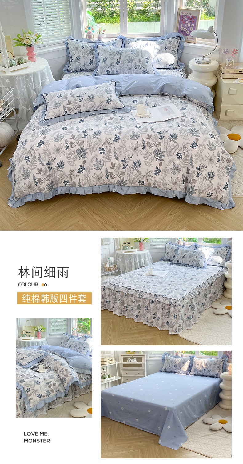 (总)美达家纺 2025新款全棉纯棉AB版蕾丝小花边单层床裙四件套,解语花,南湘,沁雨花叶,悦棠