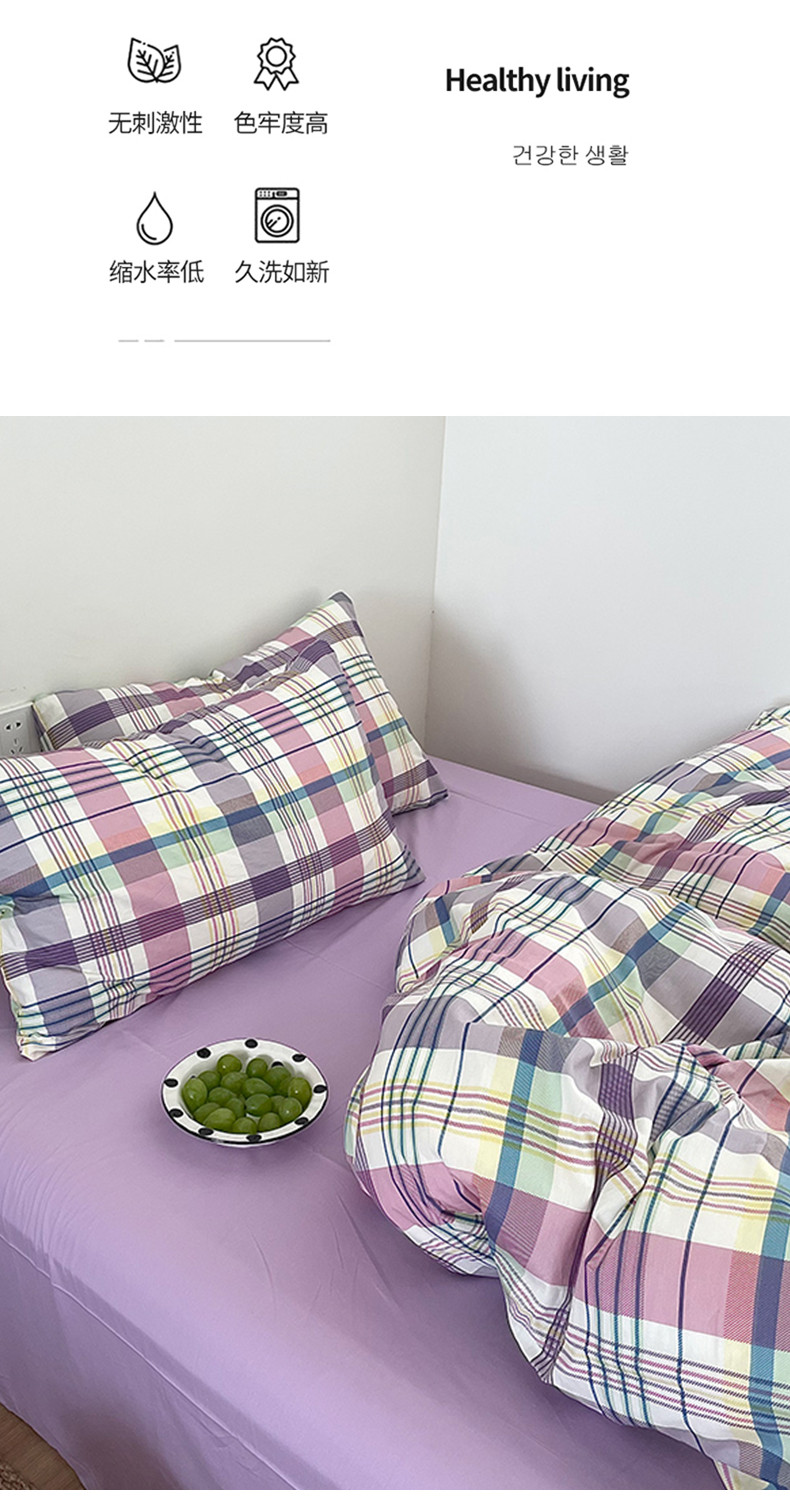 商品名称:桃喜 2024新款40支13372全棉四件套 紫格