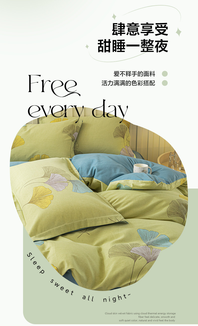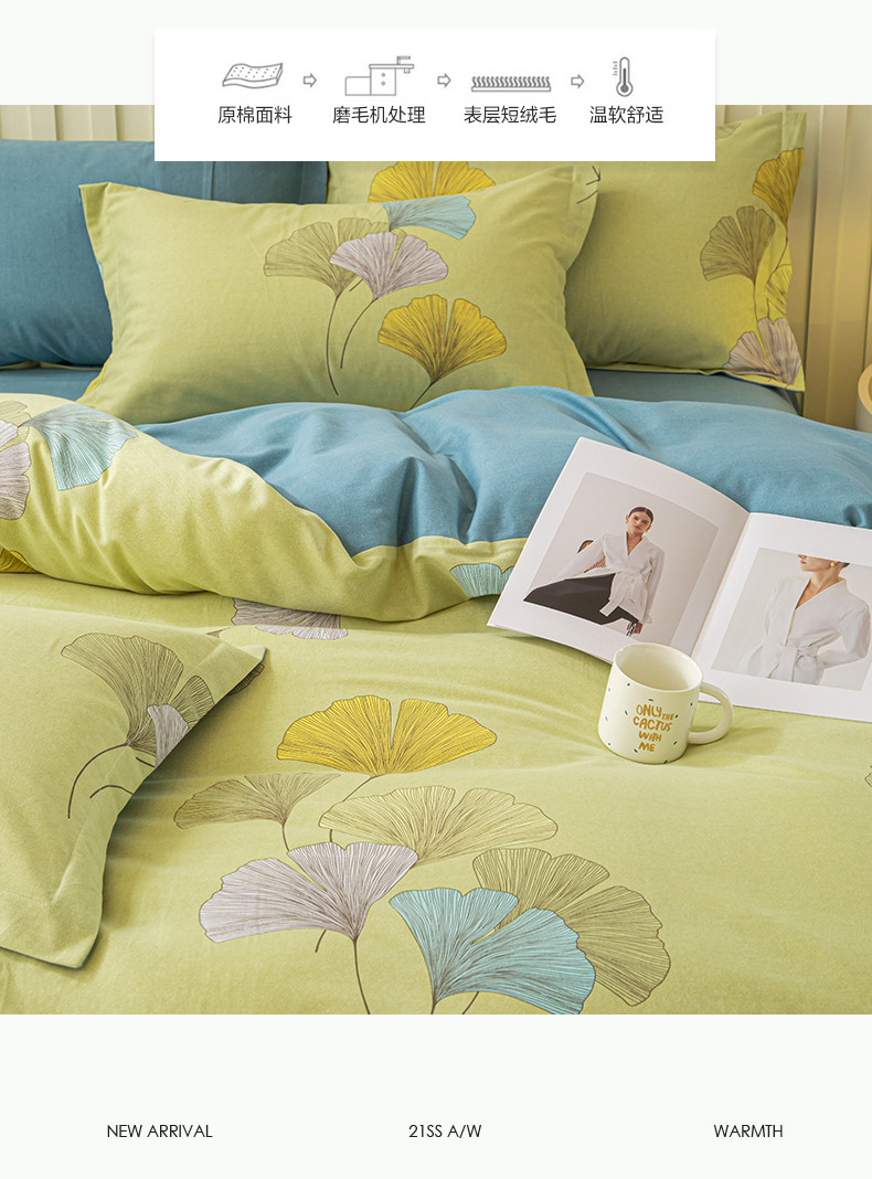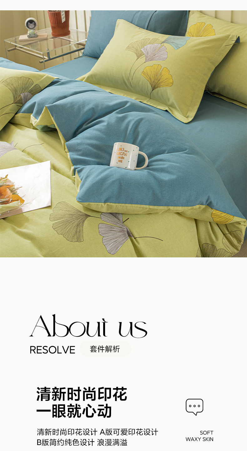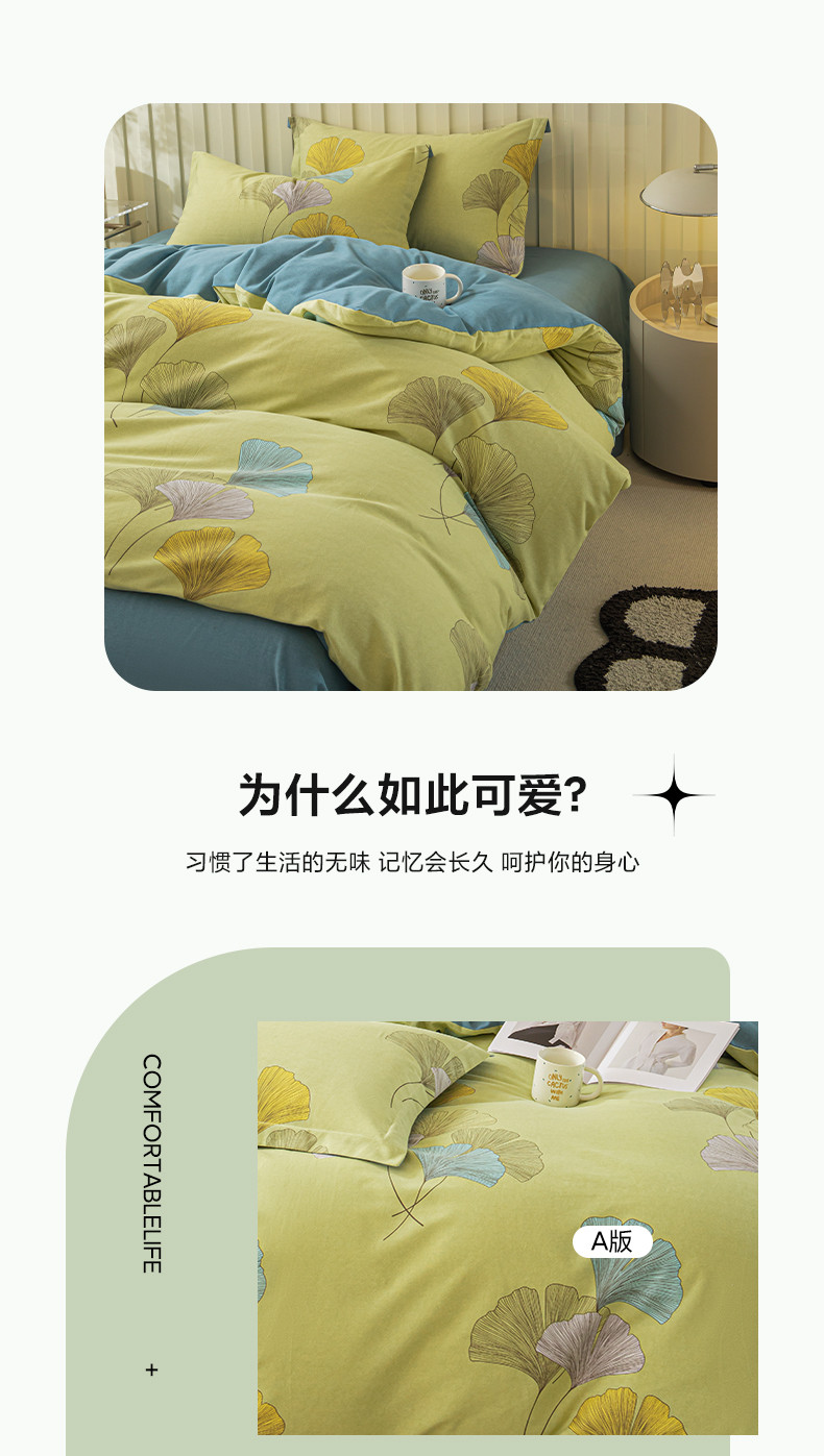 卡巴伦家纺 2023新款磨毛小清新印花系列四件套 青绿鹅黄