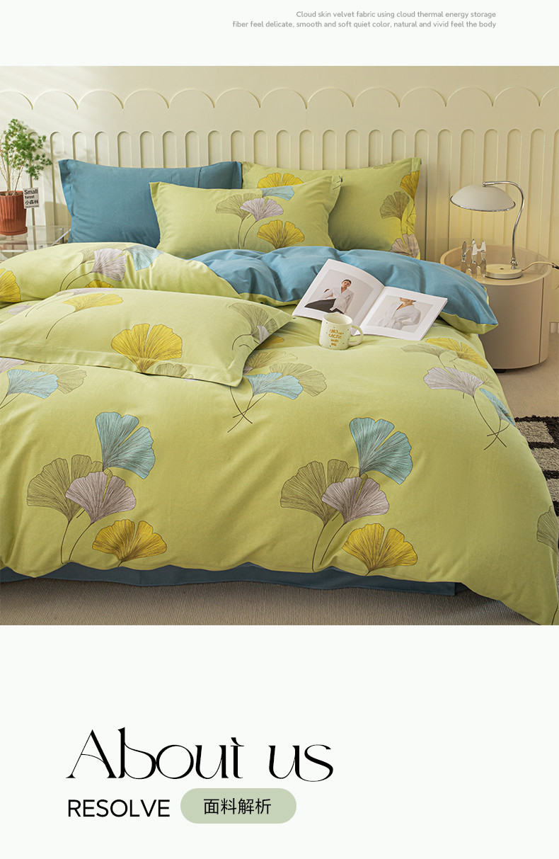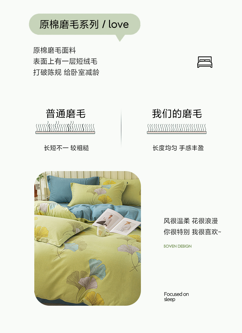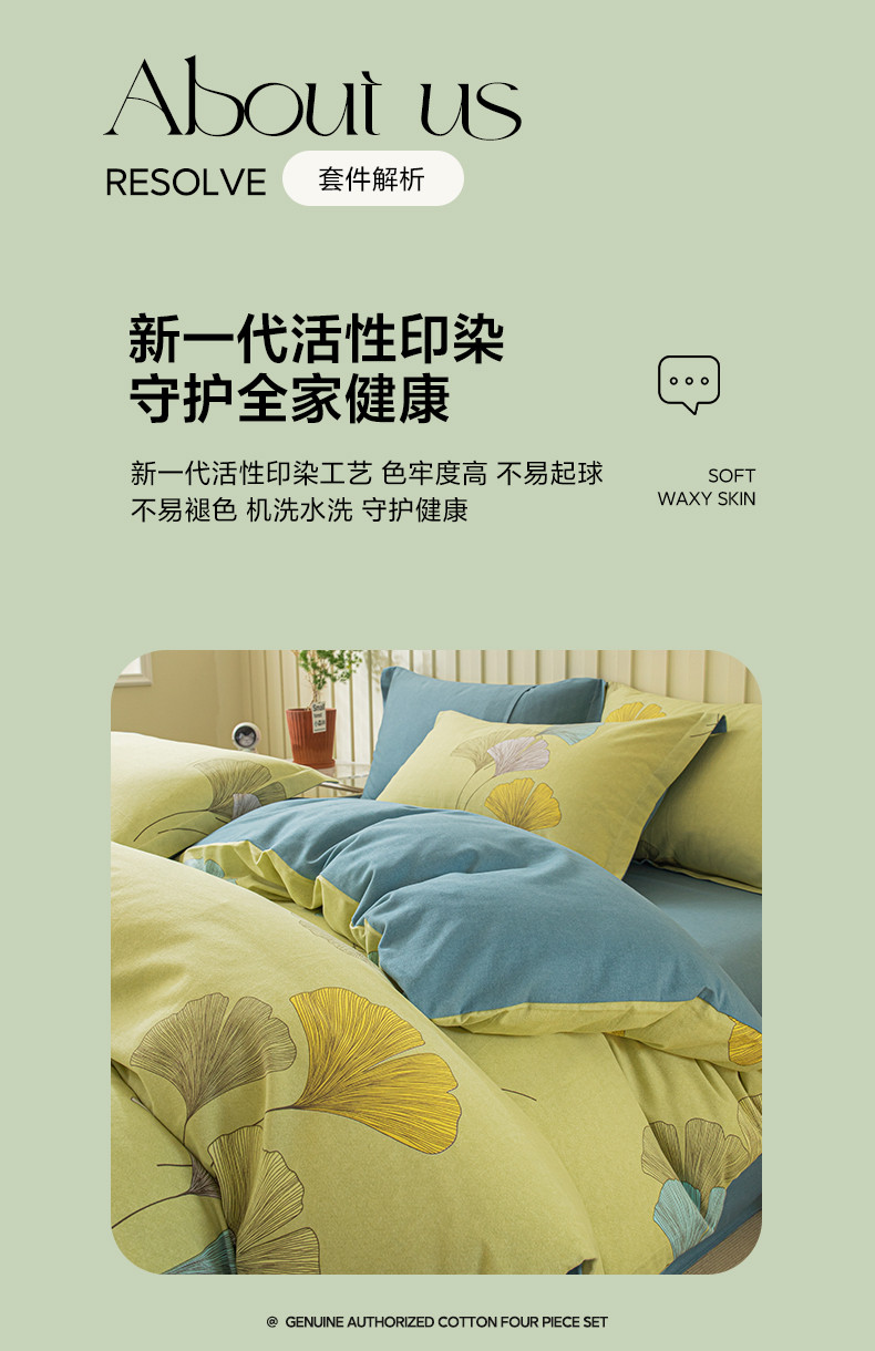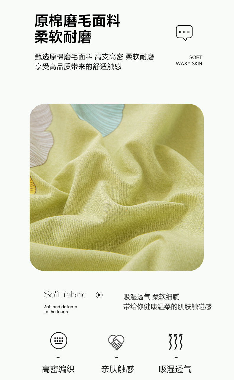 卡巴伦家纺 2023新款磨毛小清新印花系列四件套 青绿鹅黄