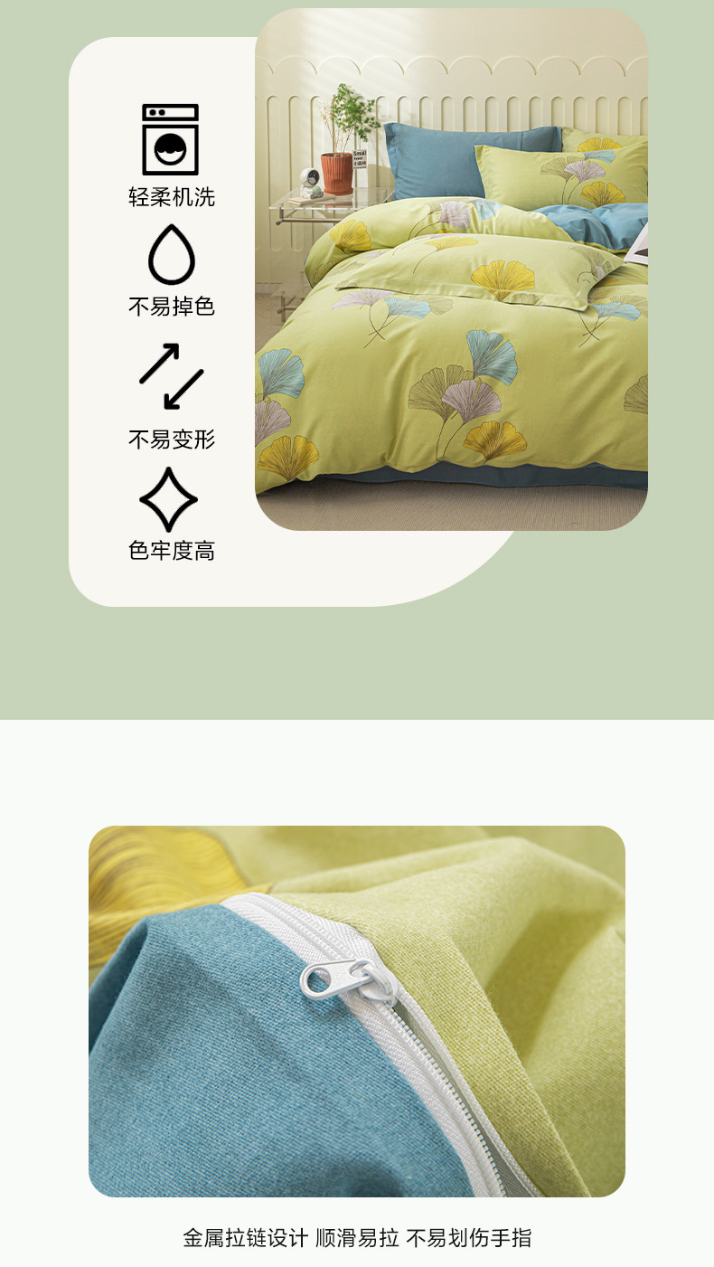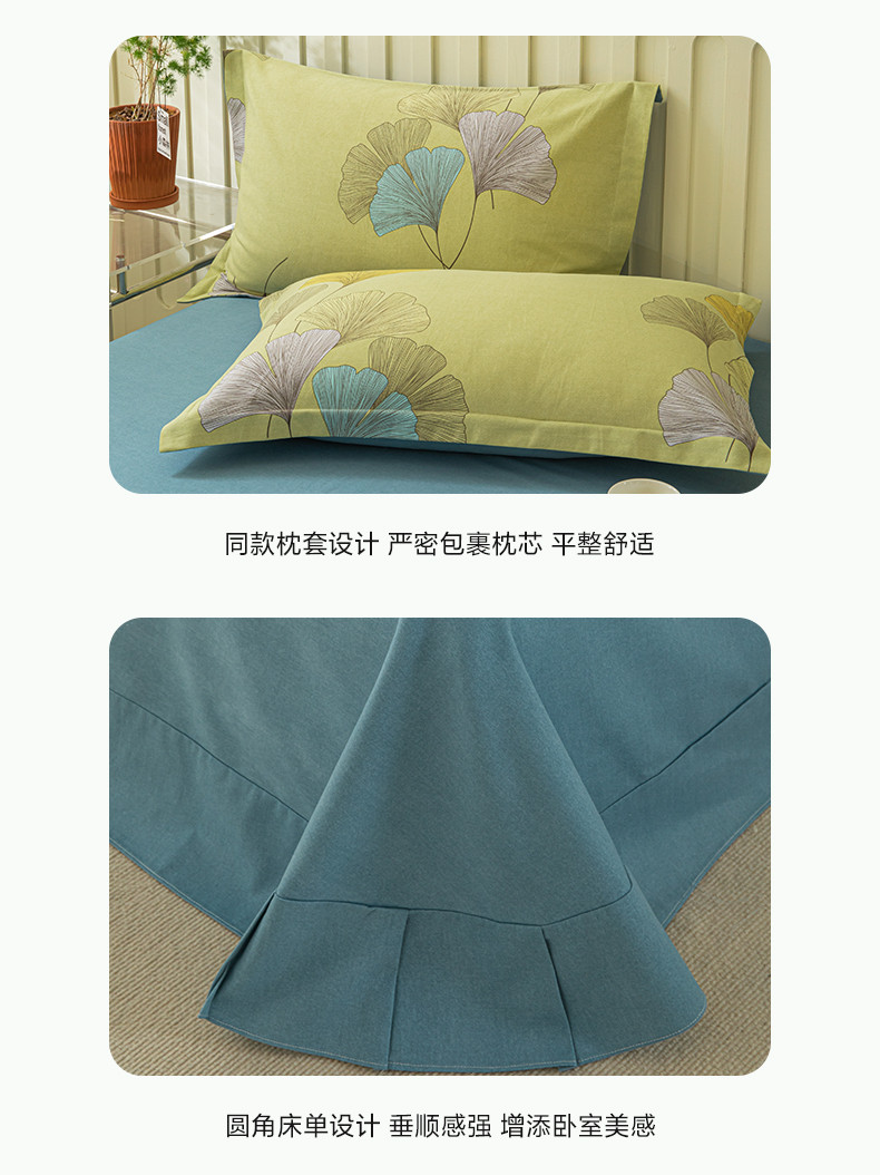 商品名称:卡巴伦家纺 2023新款磨毛小清新印花系列四件套 青绿鹅黄