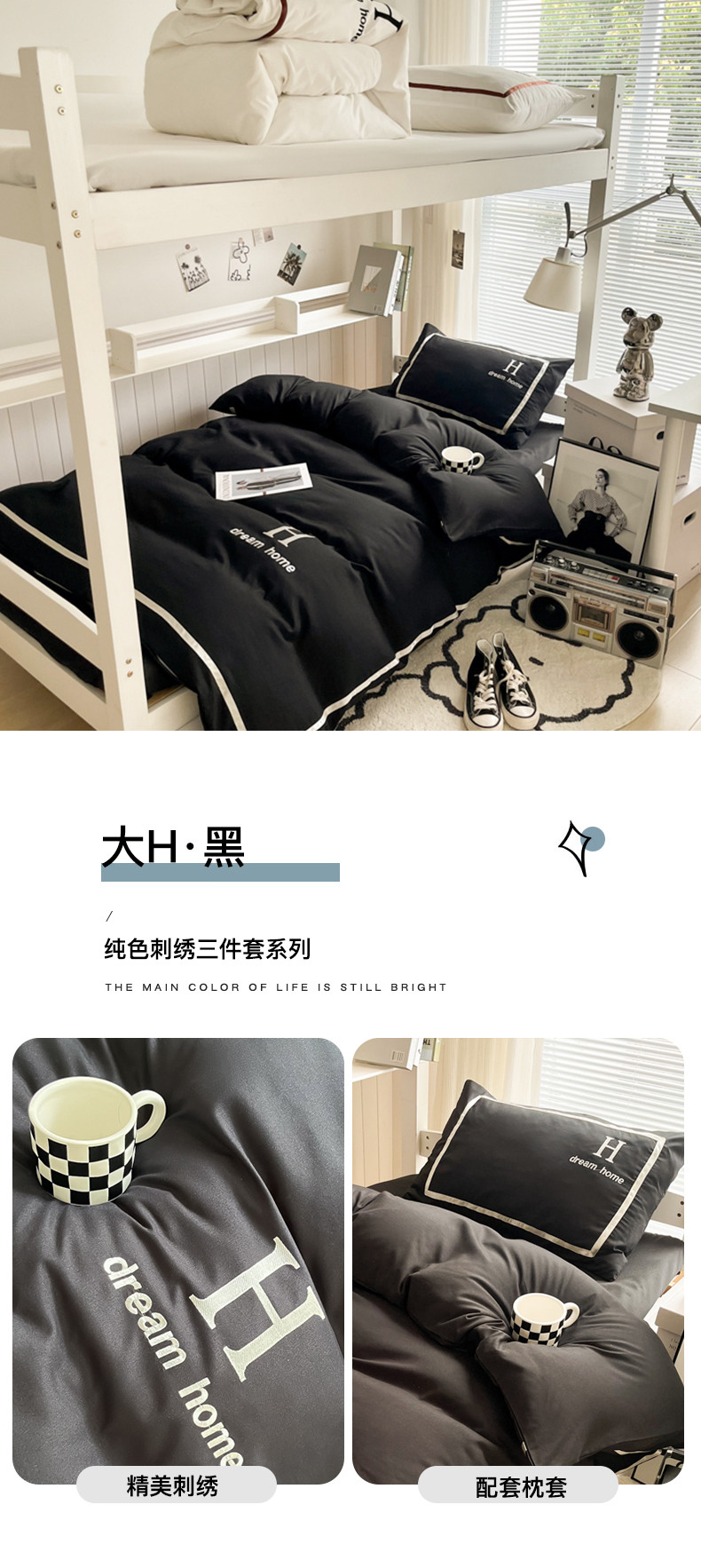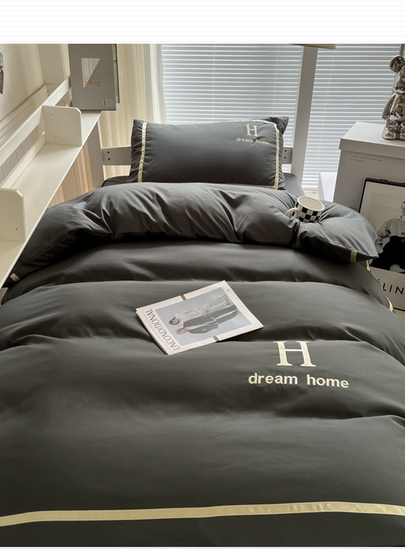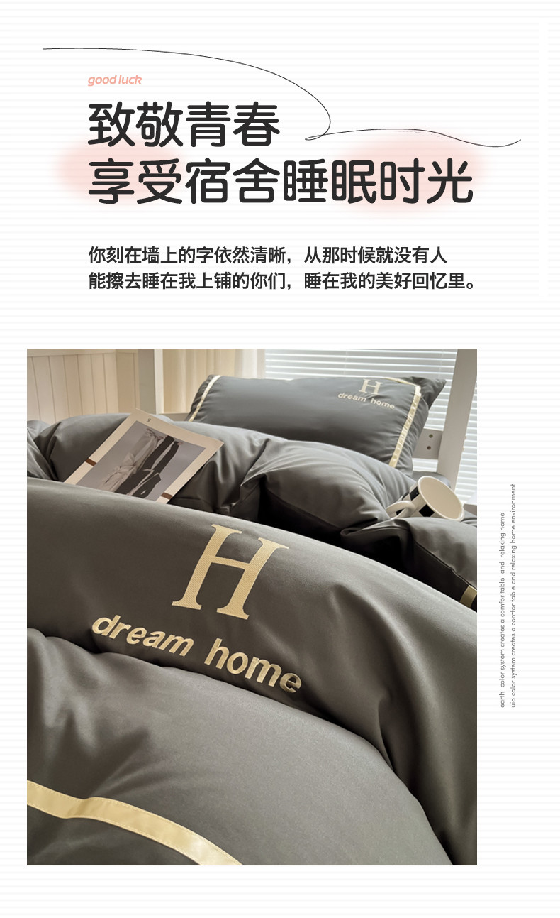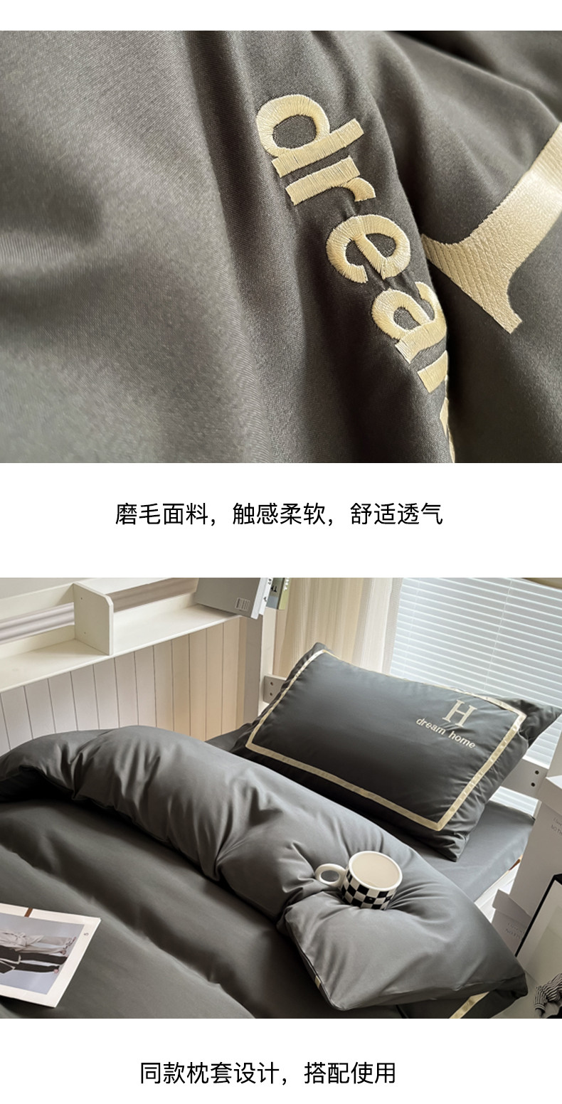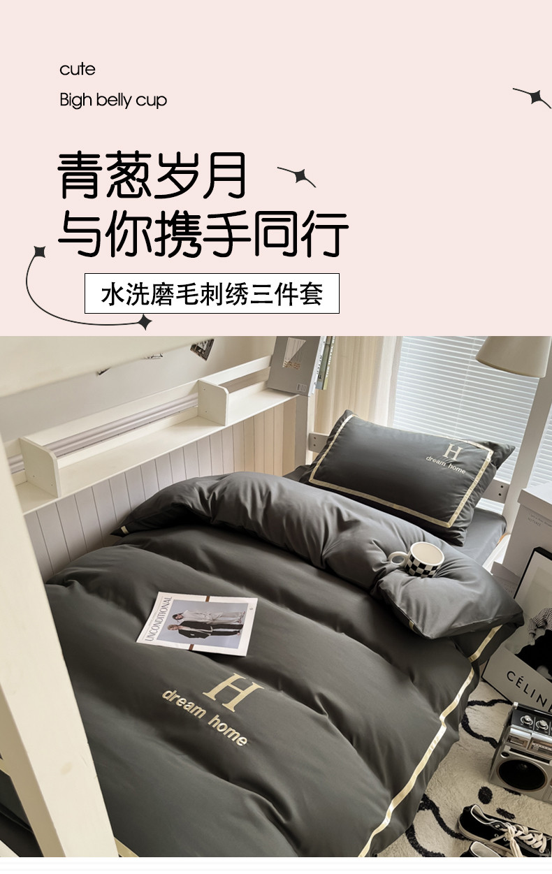 (总)千希家纺 2023新款水洗棉磨毛刺绣学生季上下铺宿舍三件套-大H款