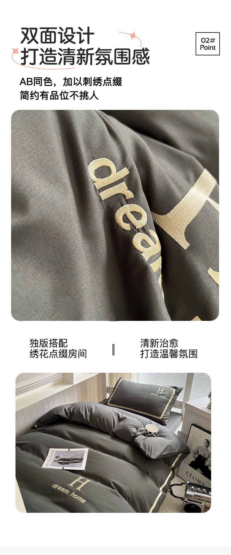 (总)千希家纺 2025新款轻奢简约亲肤棉绣花刺绣四件套-赛尔系列,赛尔-星耀黑,赛尔-蜜桃粉,赛尔-莫尼灰,赛尔-雾霾蓝