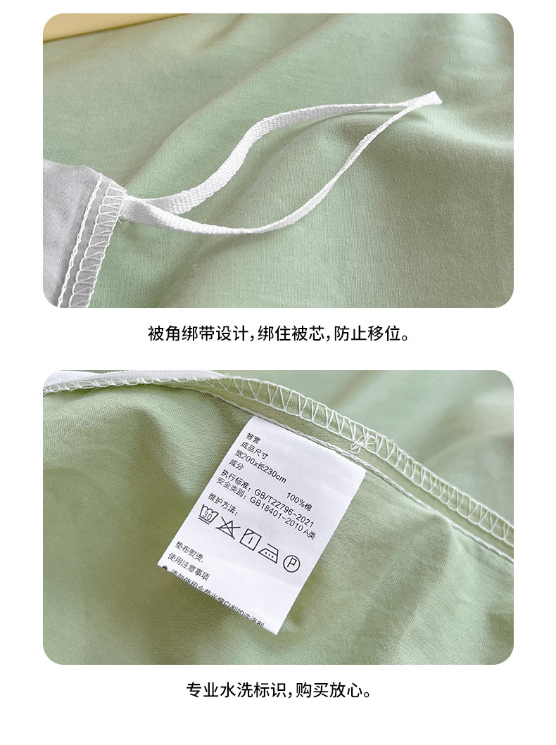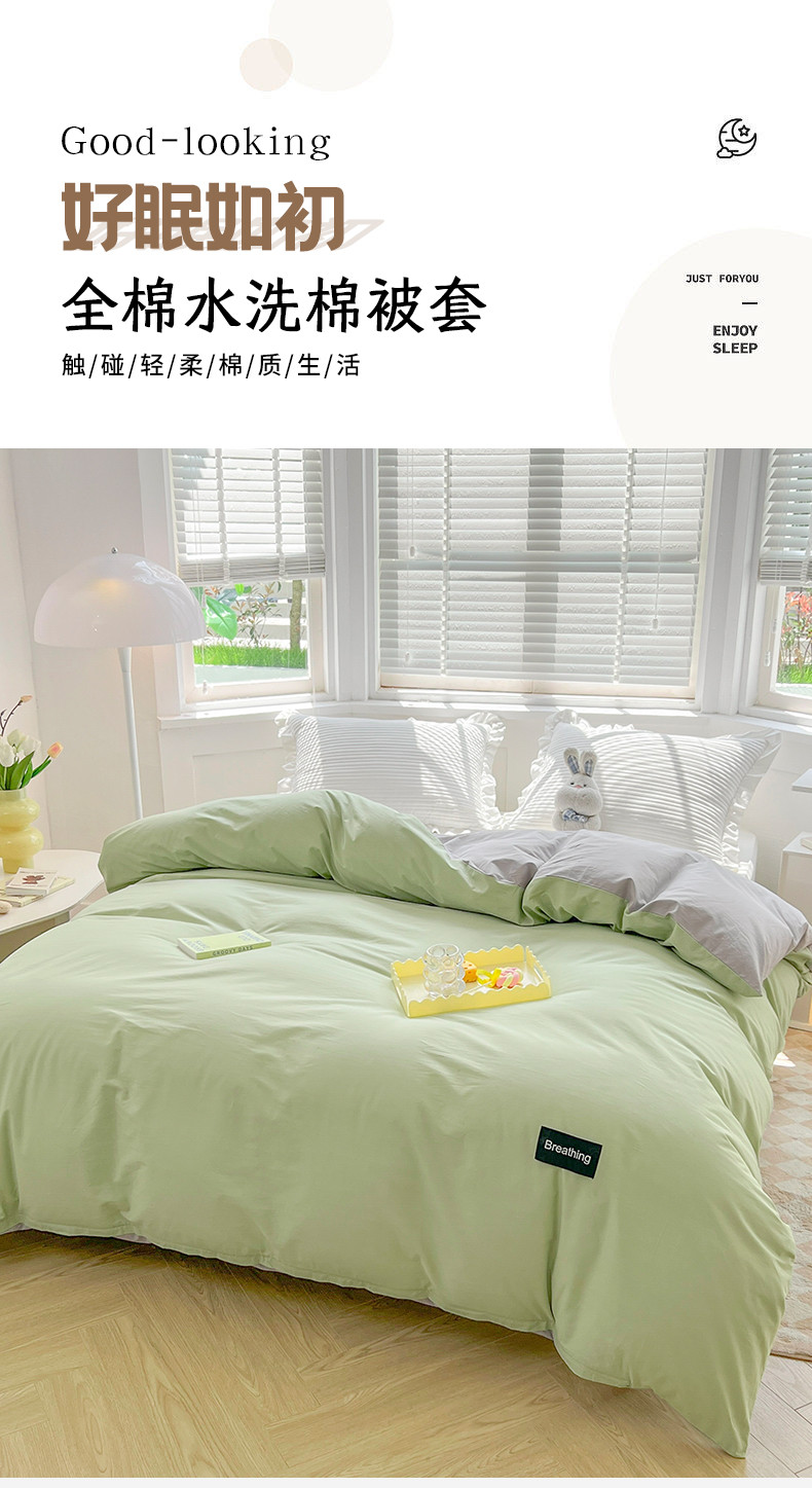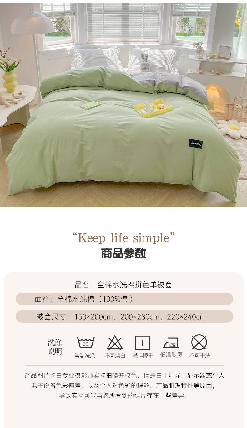 商品名称:绵庭家纺 2023新款全棉水洗棉拼色单被套 果绿+绅士灰