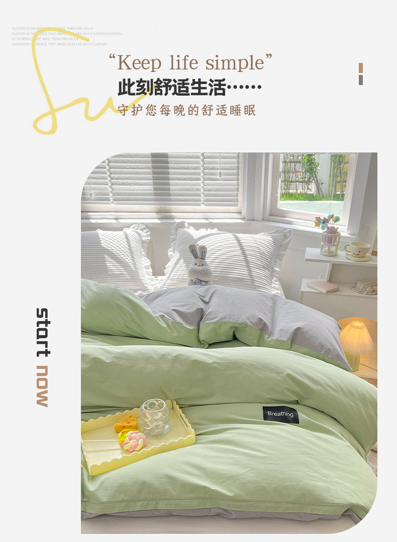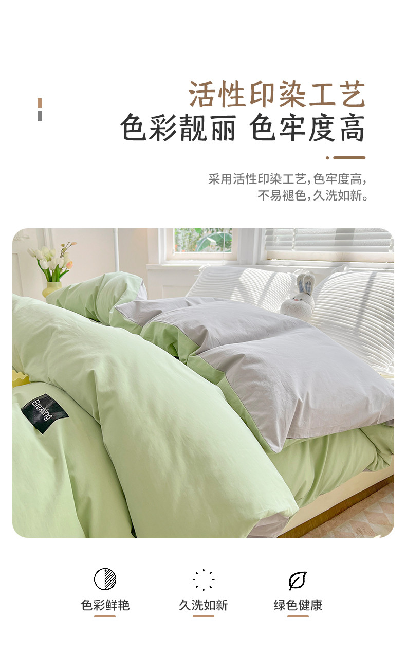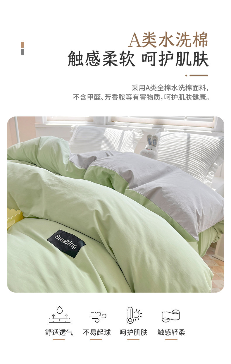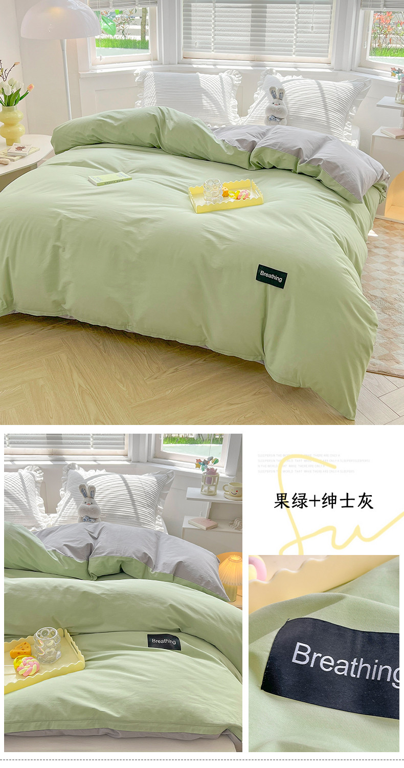 商品名称:绵庭家纺 2023新款全棉水洗棉拼色单被套 果绿+绅士灰