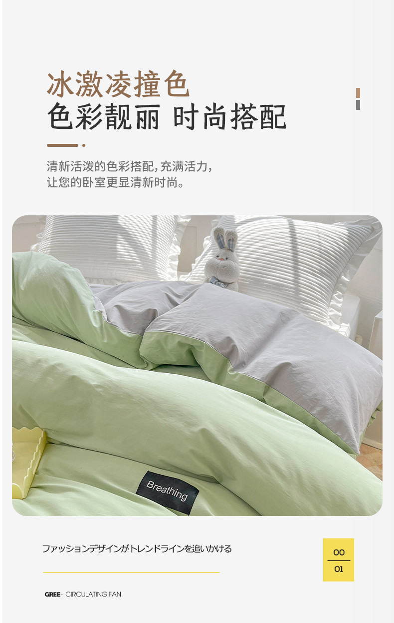 绵庭家纺 2023新款全棉水洗棉拼色单被套 果绿+绅士灰
