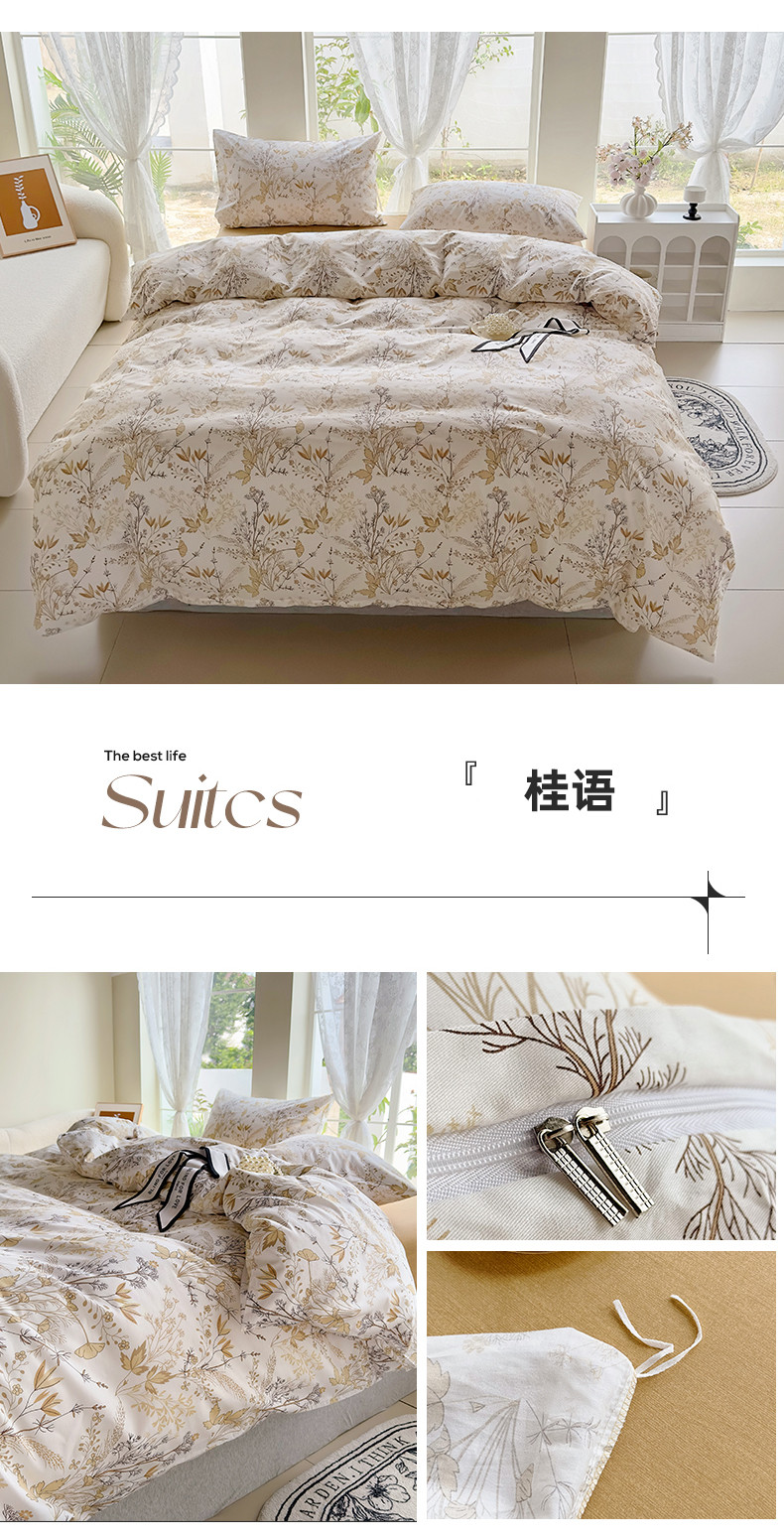 商品名称:怡家居 2023新款全棉四件套7月新花色 桂语