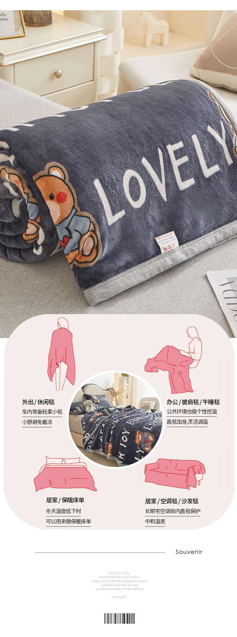 当前位置: 91家纺网 > 商品网购 > 毛毯休闲毯绒毯 > 毛毯 > 雅萱 2024新款牛奶绒盖毯子毛毯午睡毯保暖加厚 love熊