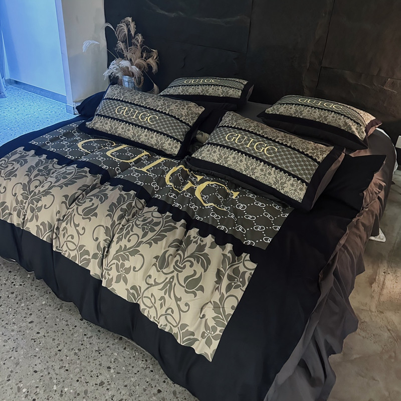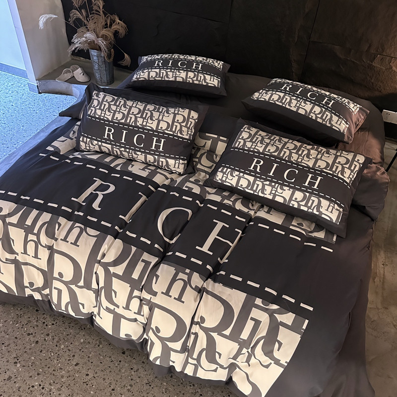 (总)丽斐 2023新款水洗真丝进口天丝数码印花冰丝四件套,巴宝,格调,黑粉,黑色礼物,黑香,蓝朋友,绿野,森林,油画熊