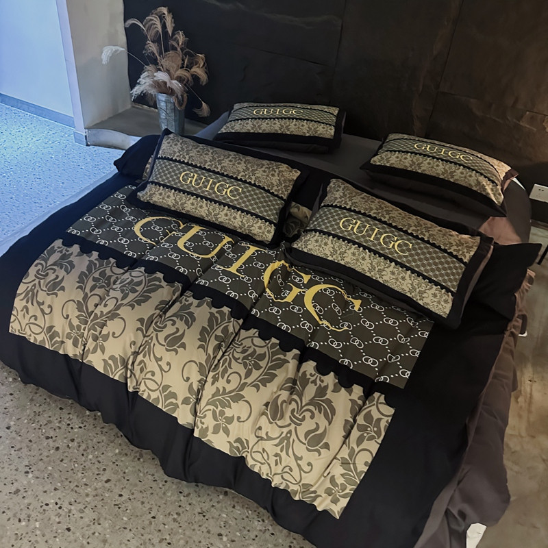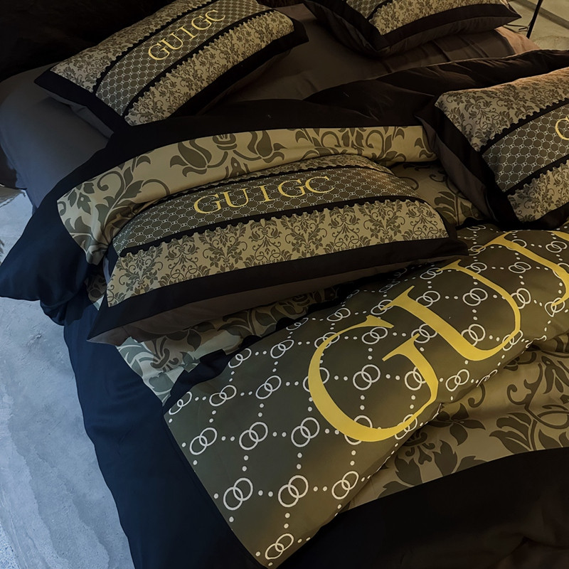 (总)丽斐 2023新款水洗真丝进口天丝数码印花冰丝四件套,巴宝,格调,黑粉,黑色礼物,黑香,蓝朋友,绿野,森林,油画熊