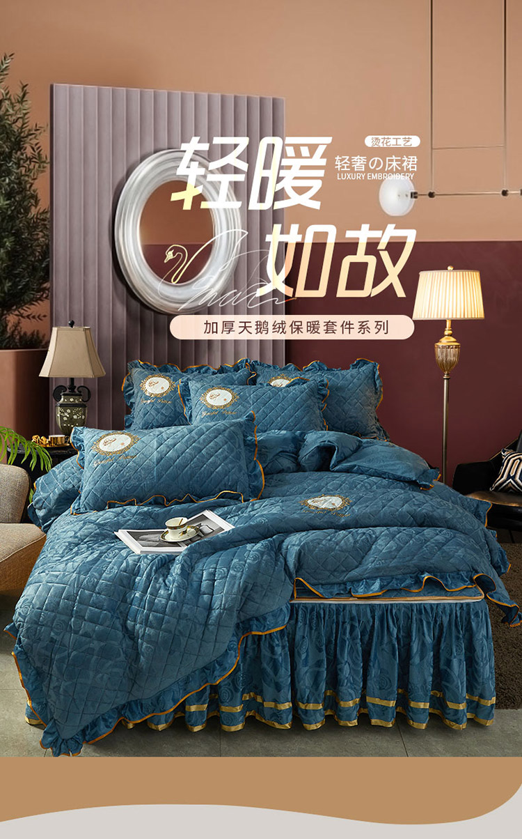 当前位置: 91家纺网 > 商品网购 > 床品套件 > 四件套 > 磨绒四件套 > 大豆蛋白棉天鹅绒夹棉床笠加床裙拉链可脱卸床裙 居里夫人-钴蓝