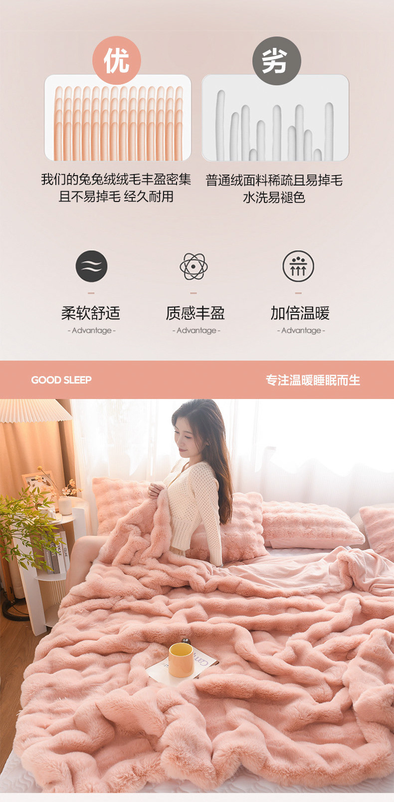 商品名称:(总)寐时代 2024爆款480克大泡泡兔毛绒仿兔毛毯多功能盖毯