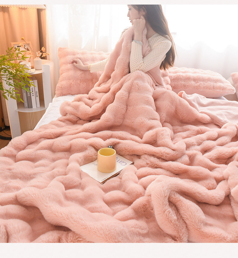 (总)寐时代 2024爆款480克大泡泡兔毛绒仿兔毛毯多功能盖毯