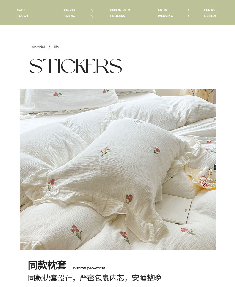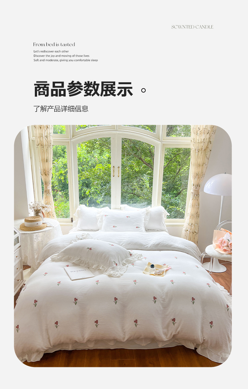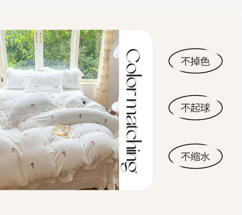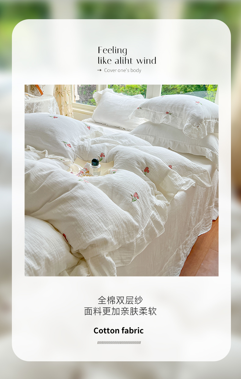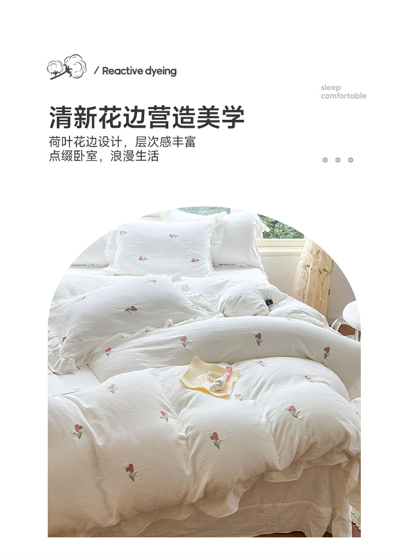 商品名称:木楌家居 2024秋冬全棉皱皱纱荷叶边刺绣工艺款四件套 伊人