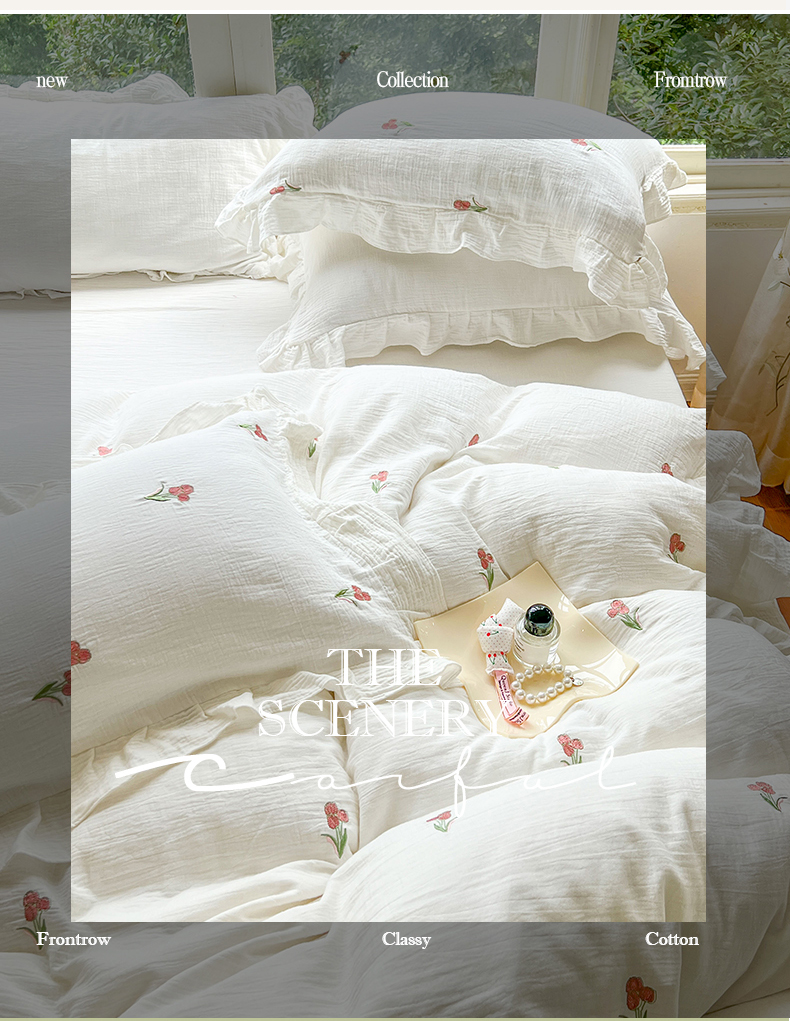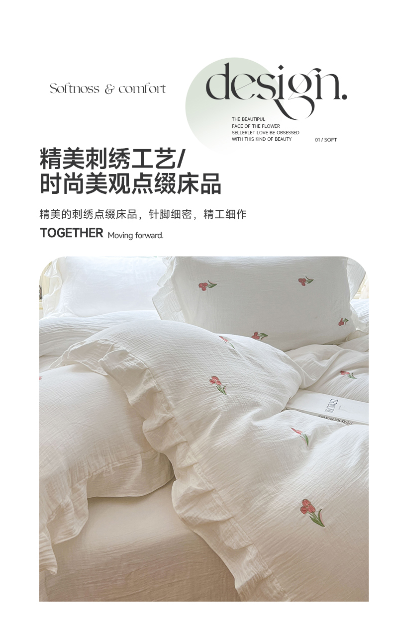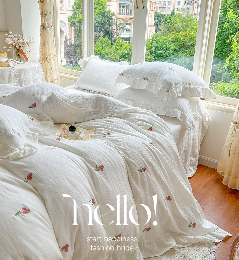 木楌家居 2024秋冬全棉皱皱纱荷叶边刺绣工艺款四件套 伊人