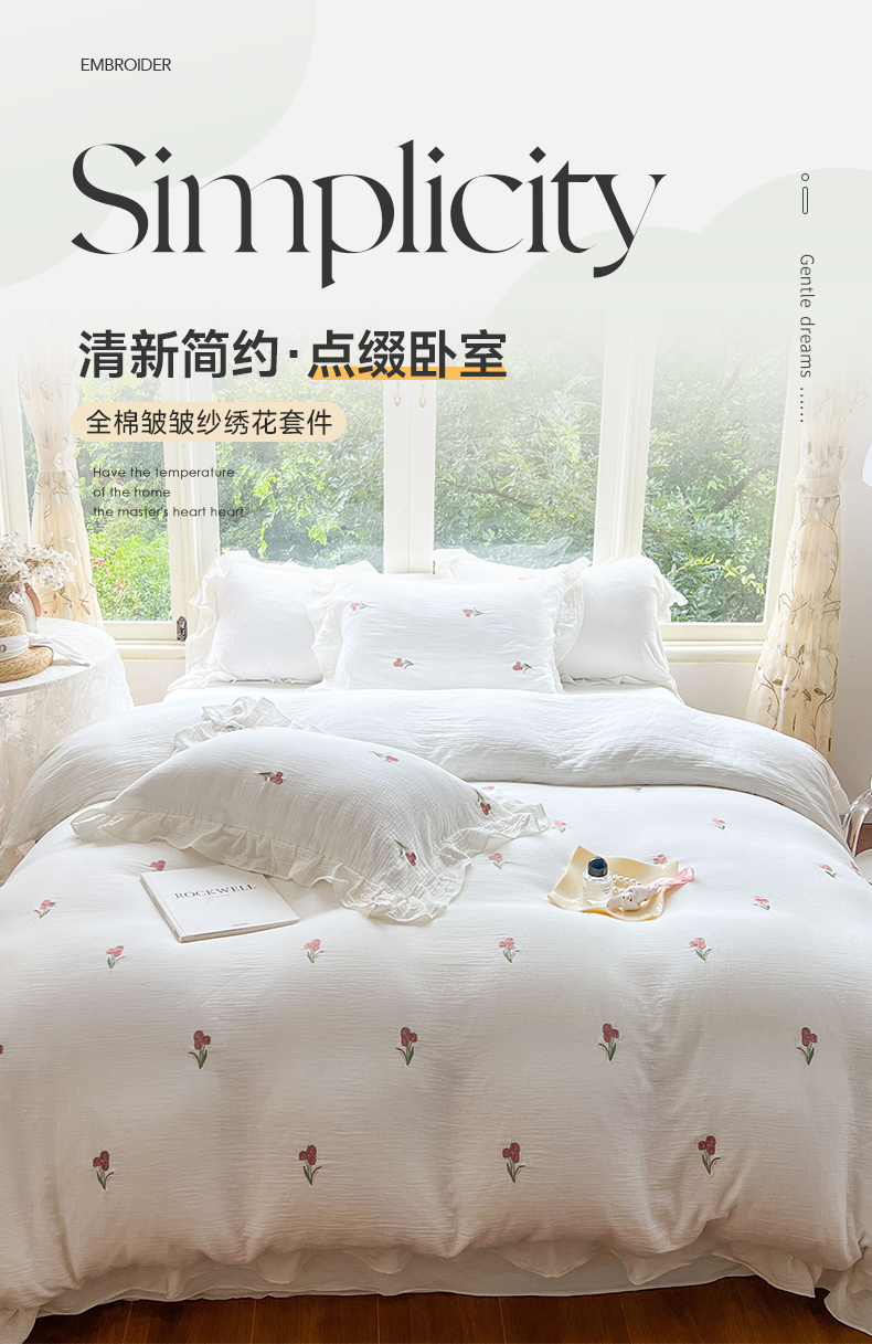 (总)木楌家居2025新款全棉彩点皱皱纱绣花四件套,暗香初醒,星柠微糖,樱草日记,织梦星河