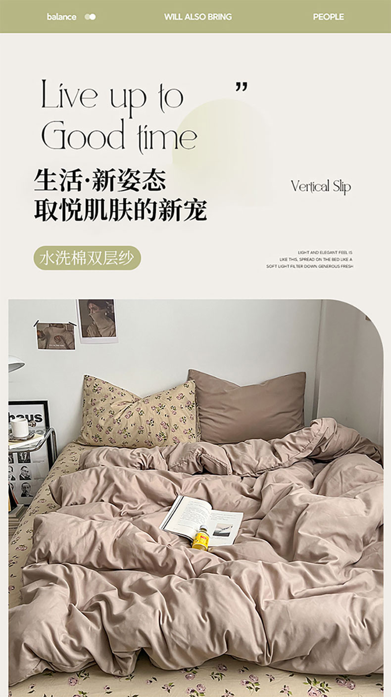 商品名称:梦嘉居 2023新款水洗棉双层纱亲肤舒适单床笠 卡其+风华