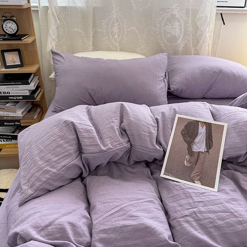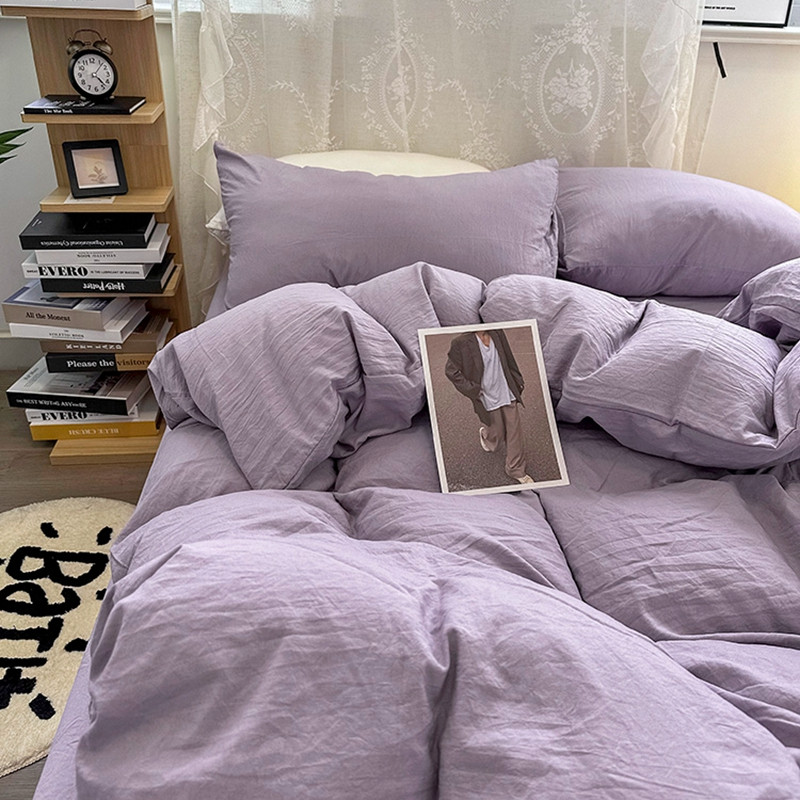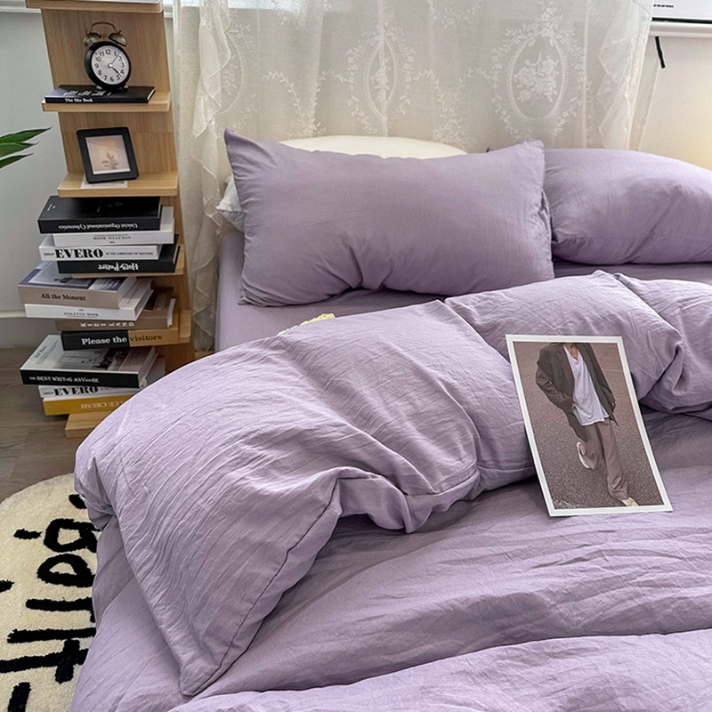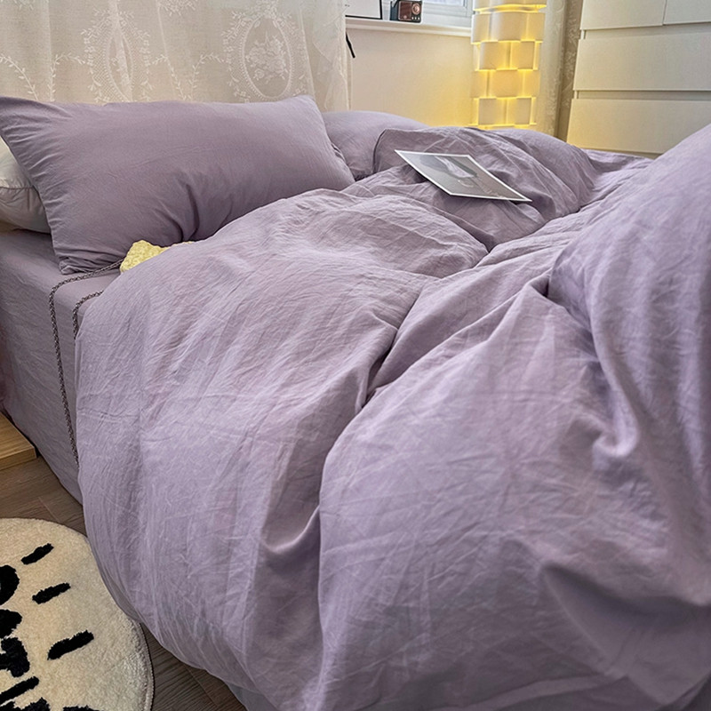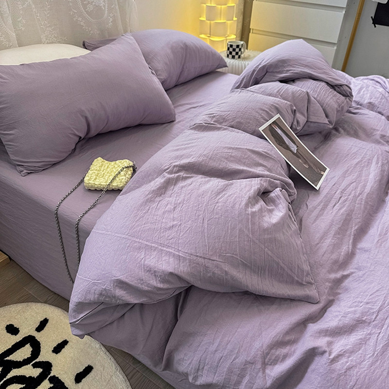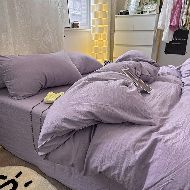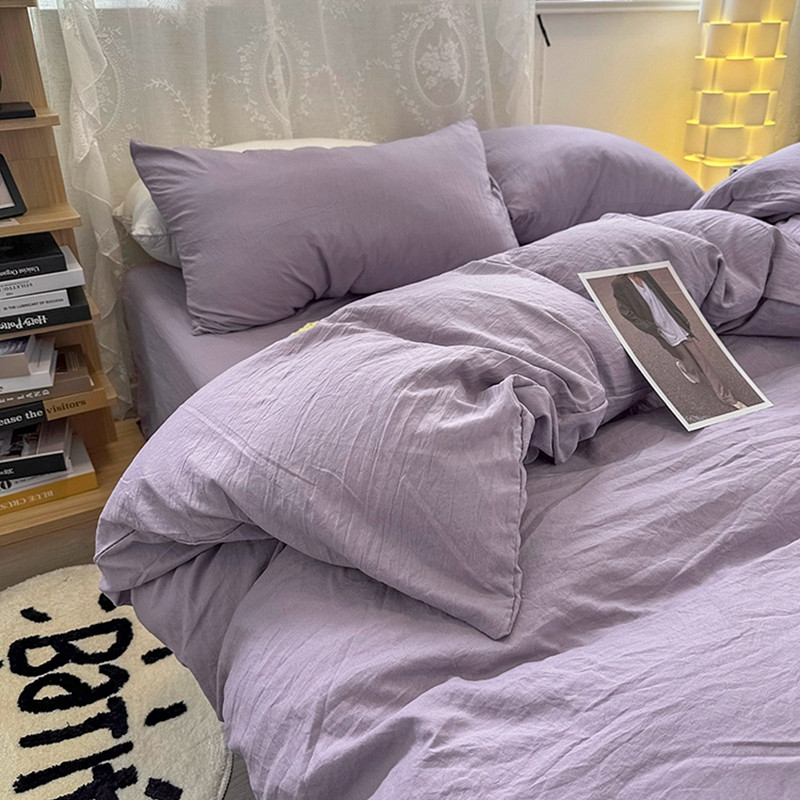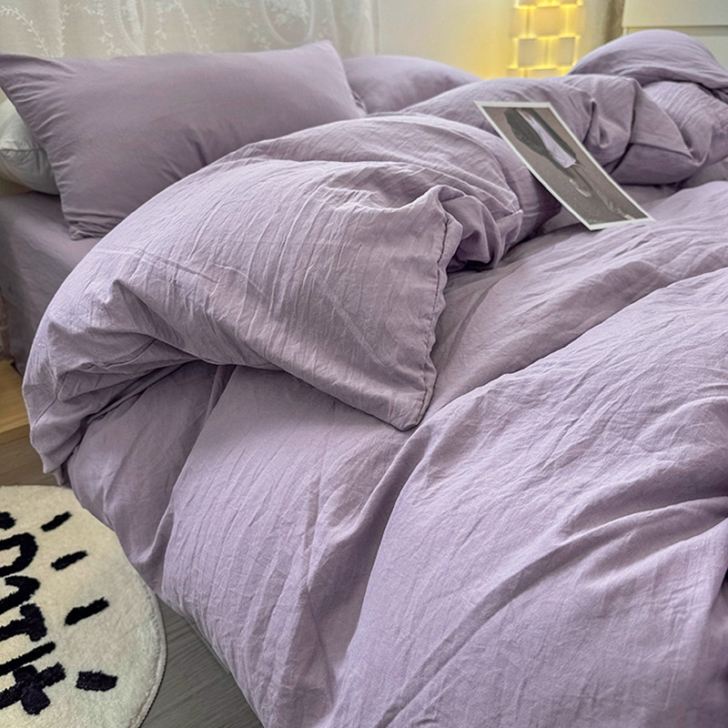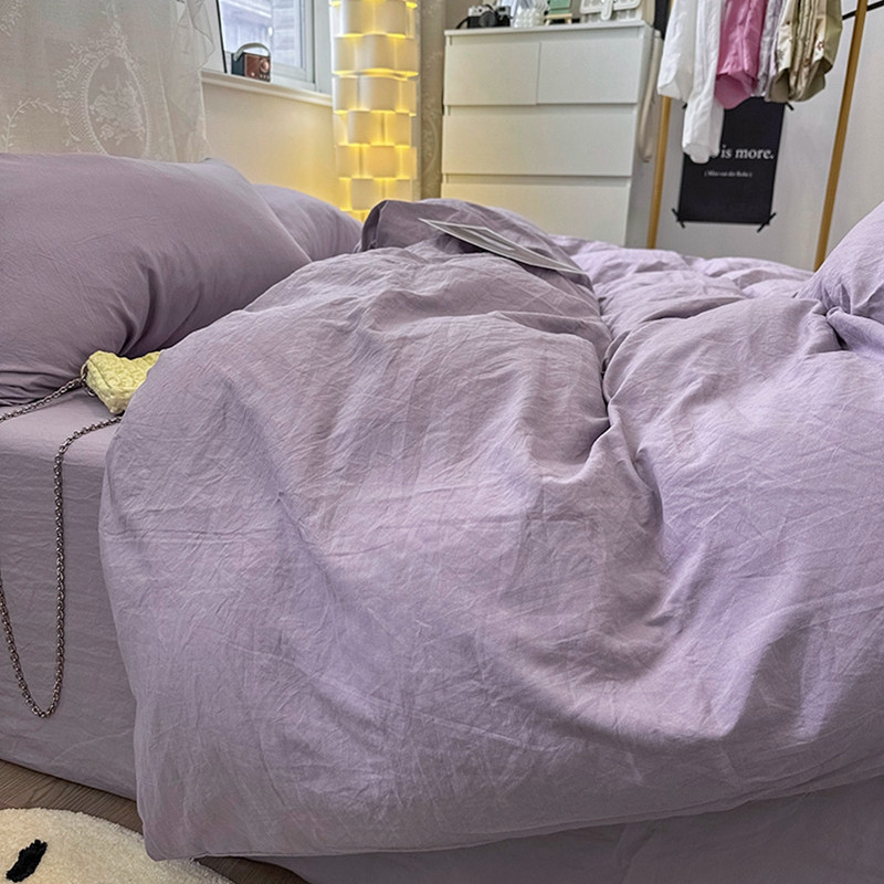 当前位置: 91家纺网 > 商品网购 > 床品套件 > 四件套 > 水洗棉四件套 > 优色良品 2023新款纯色超柔水洗棉四件套(手机拍摄) 褶皱水洗棉-奶紫色