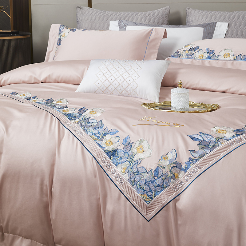 (总)爱情故事 2025新款居家140支轻奢贡缎长绒棉刺绣四件套,初若-蓝,初若-绿,初夏(豆沙),初夏(米白),满园-粉,满园-蓝,满园-浅紫,青城,余生-豆沙,余生-蓝,余生-深紫