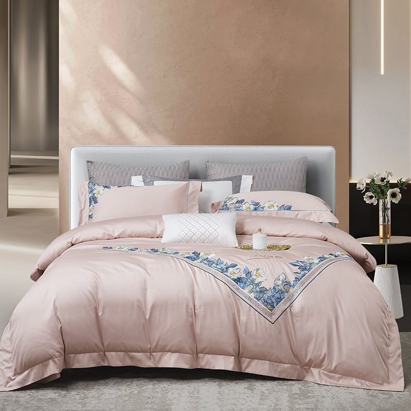 爱情故事 2025新款100支新疆长绒棉刺绣四件套 春韵(粉玉)