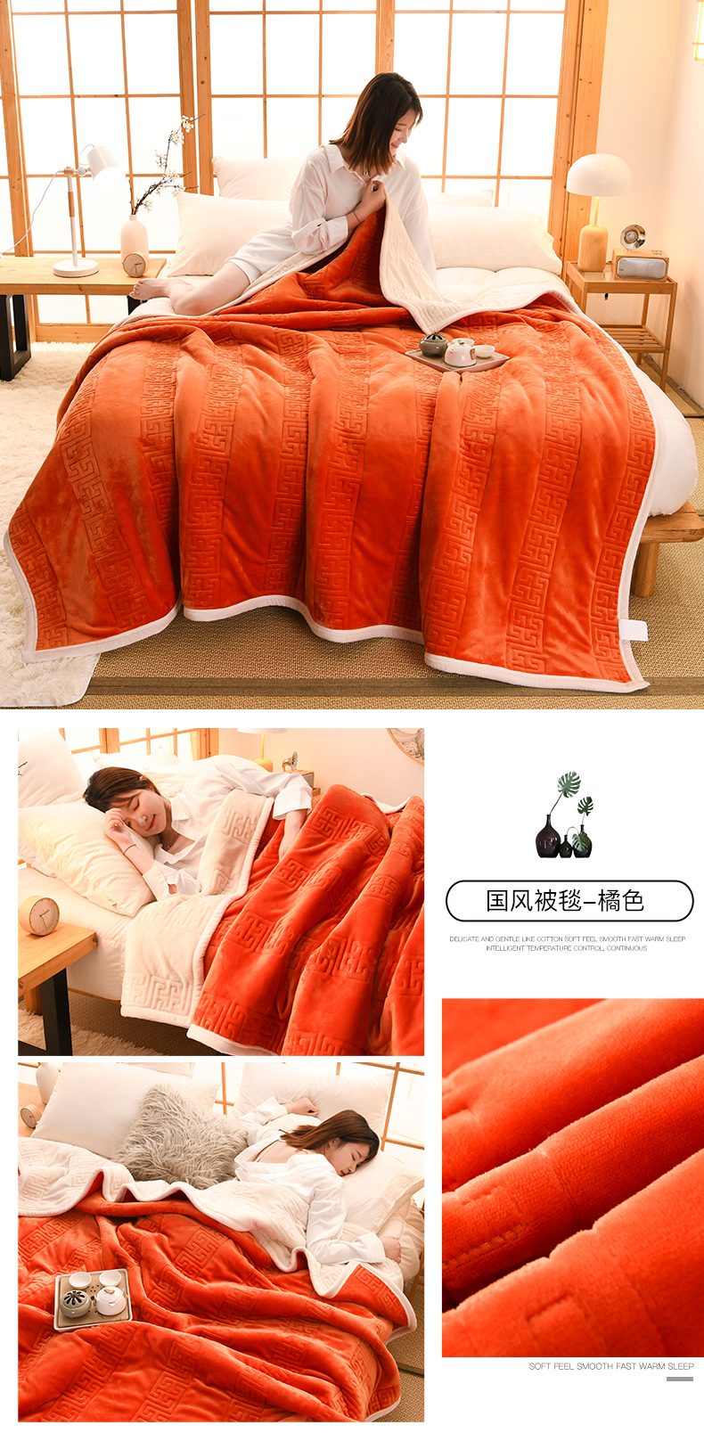 商品名称:2023新款【加厚款】国风被毯 橘色