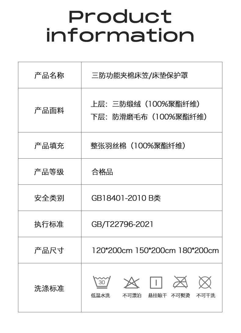 商品名称:(总)三味舒屋 2024新款磨毛三防夹棉床笠床垫保护罩