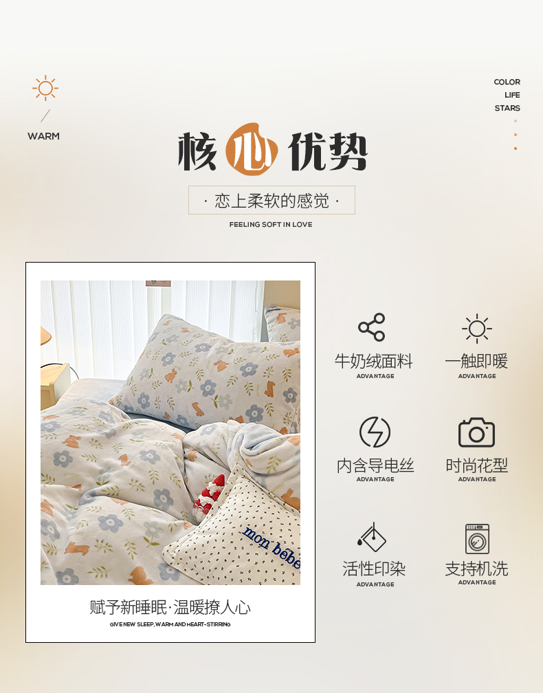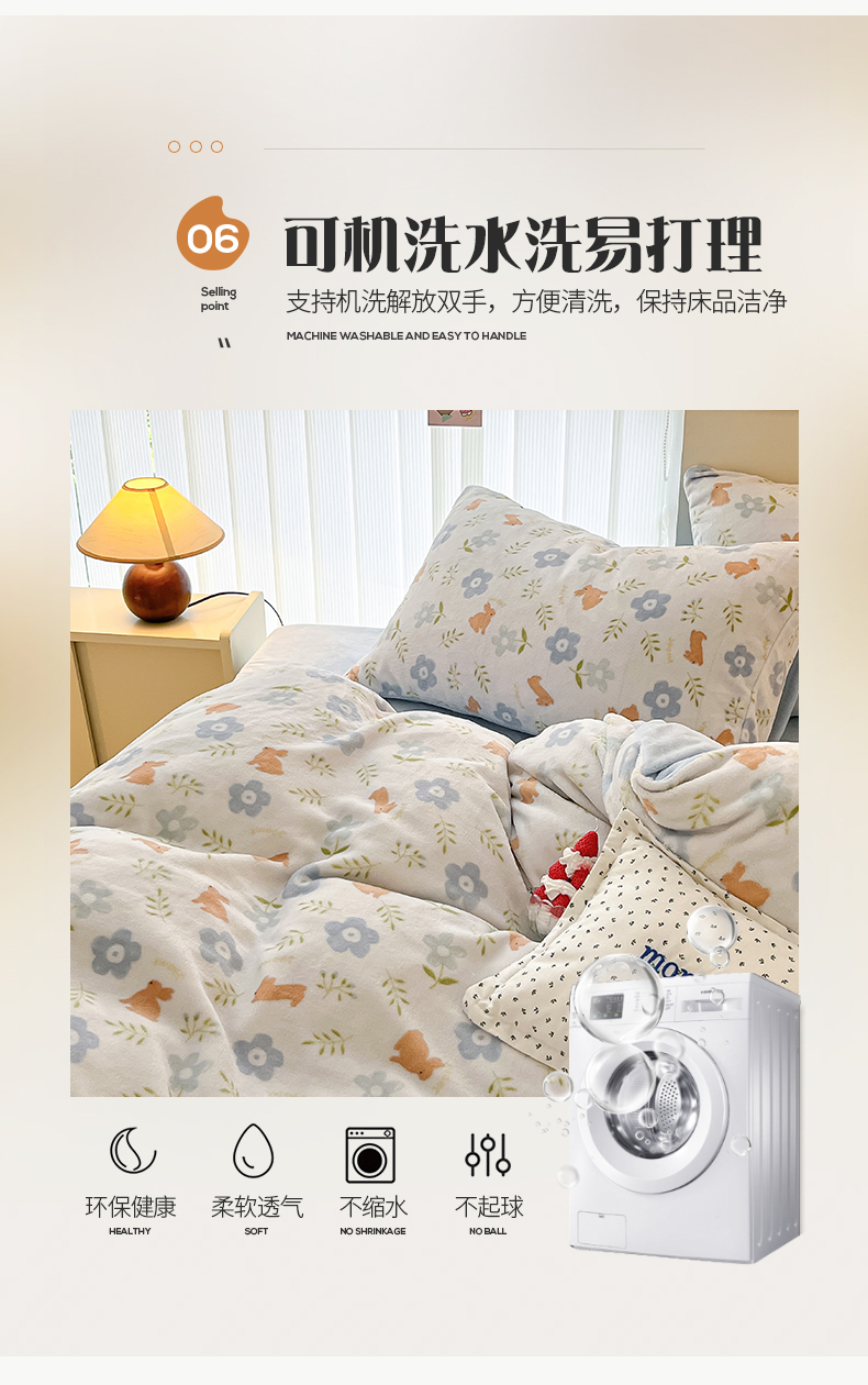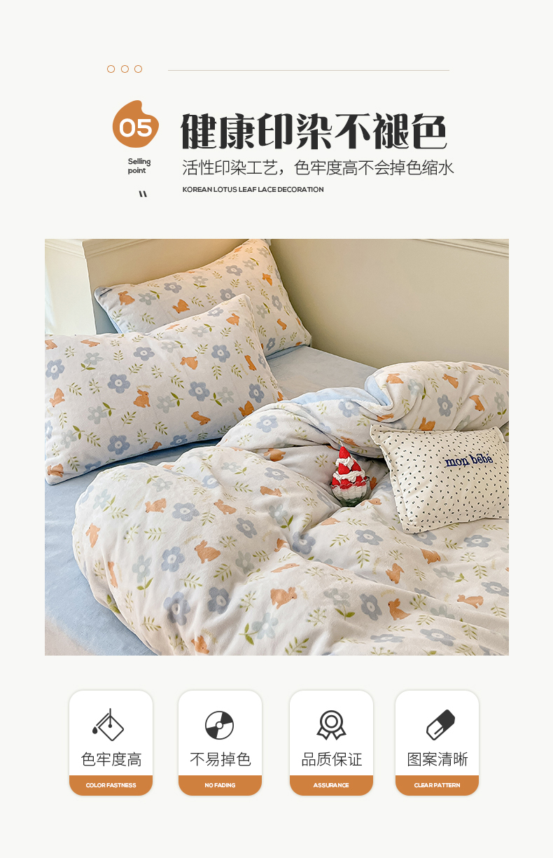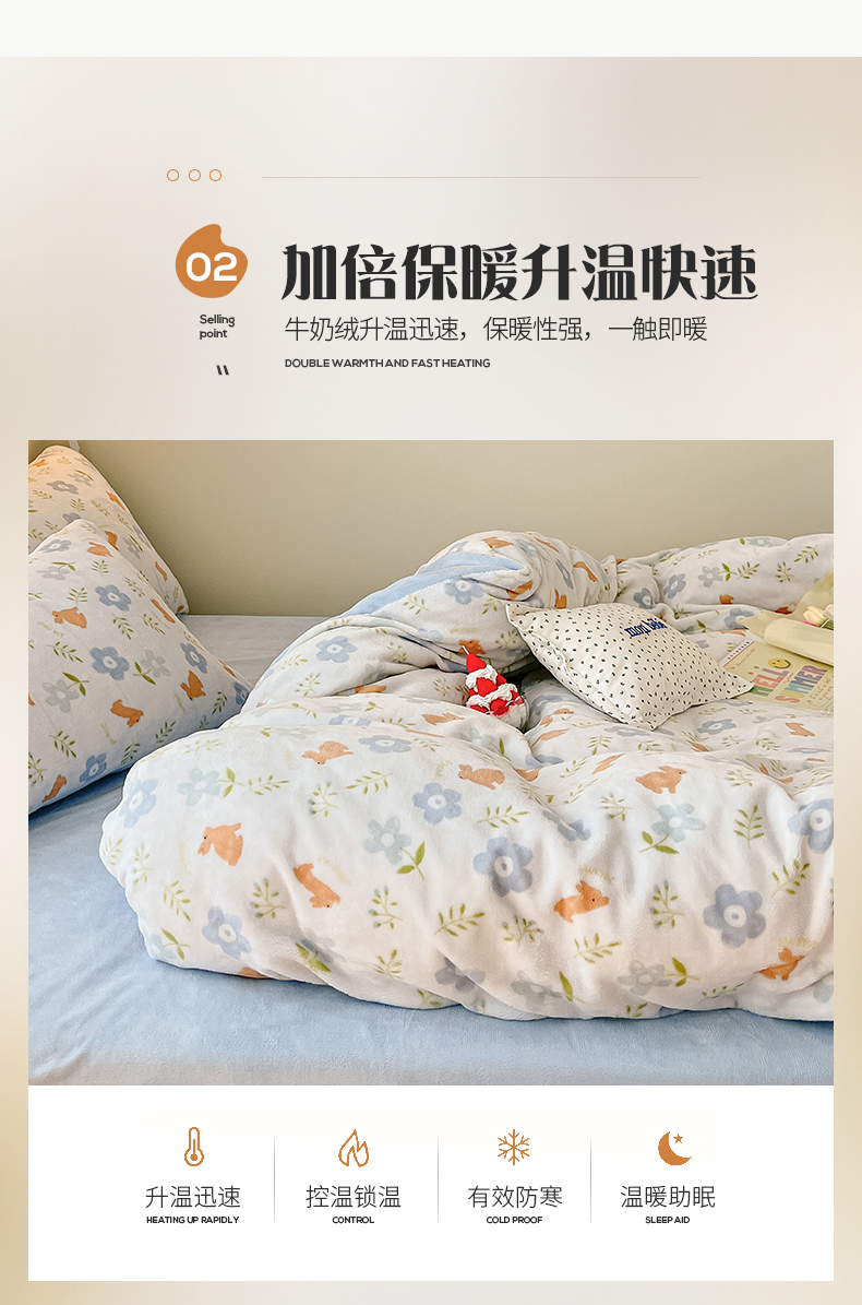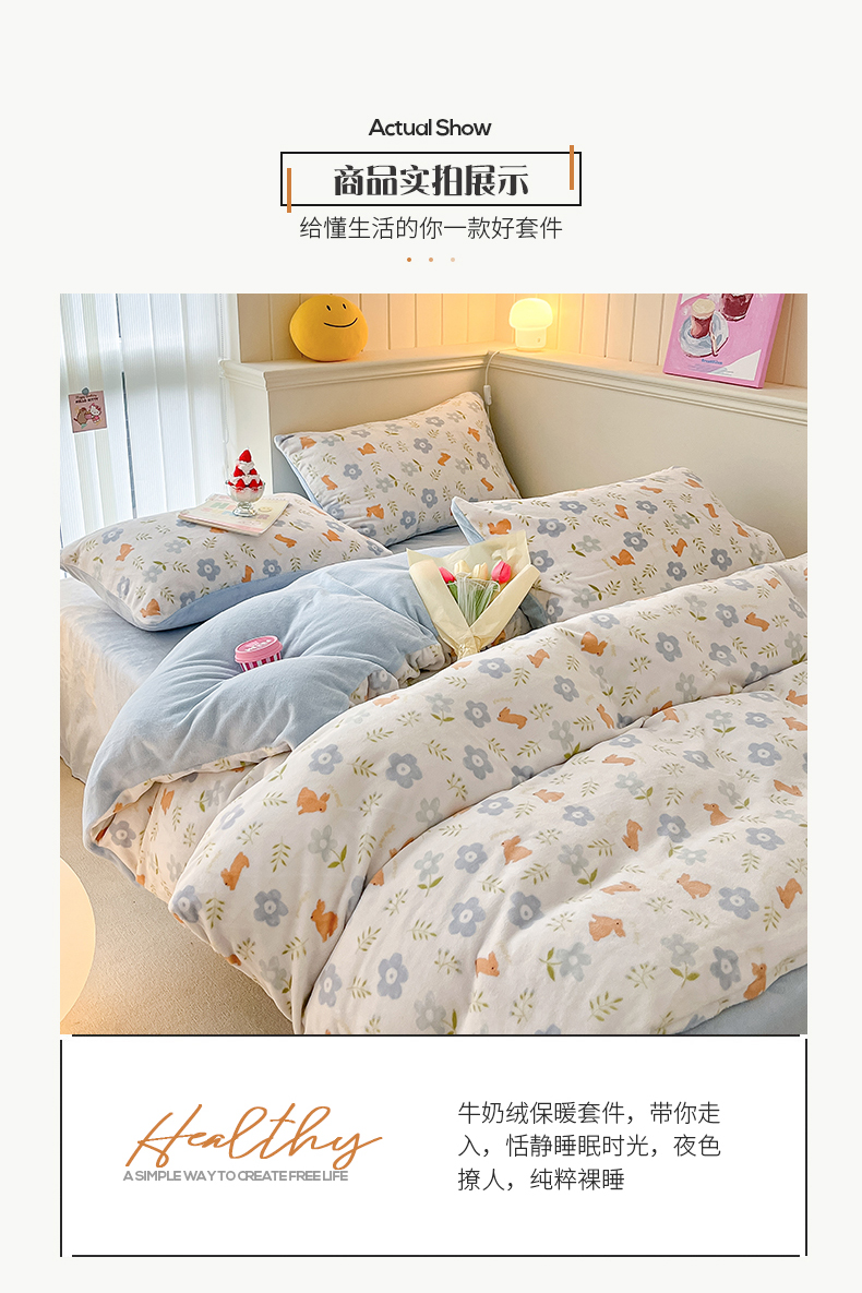 桃子 2023新款ins小清新韩系卡通少女心奶油兔子加厚牛奶绒系列四件套-第一批 绒-蓝花兔