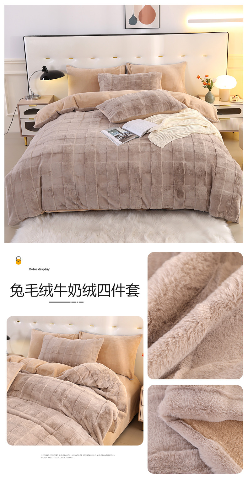 商品名称:富之航家纺 2023新款兔毛牛奶绒四件套 奶茶咖