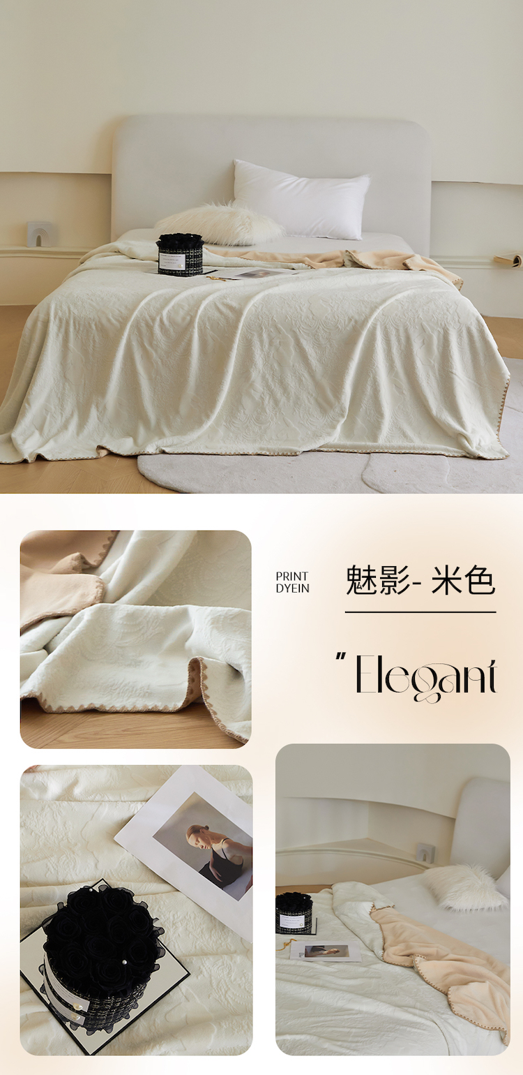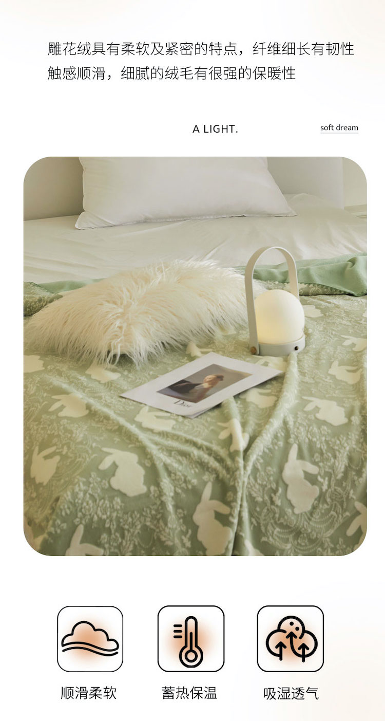 (总)铭动 2024新款雕花绒保暖毯-悠若毛毯,粉,卡其,蓝,绿
