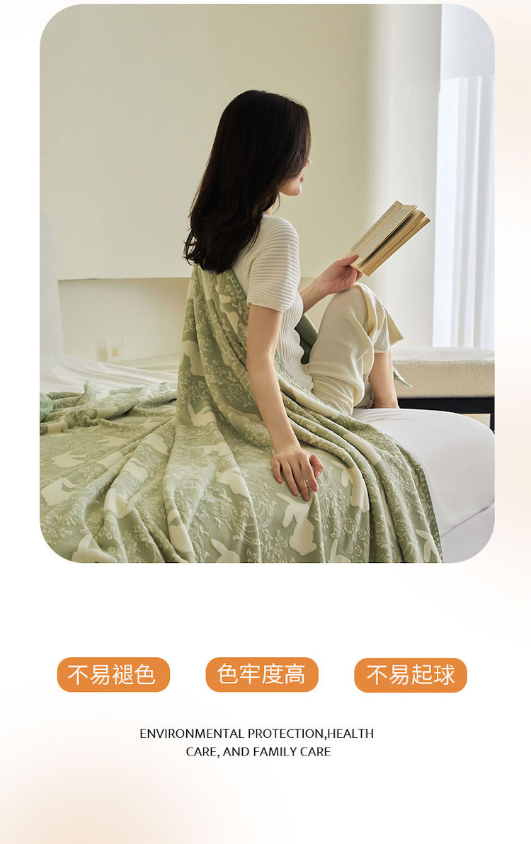 三层加厚冬用毛毯被子保暖牛奶绒珊瑚绒午睡毯冬季绒毯 -绿,欣欣向荣-棕绿