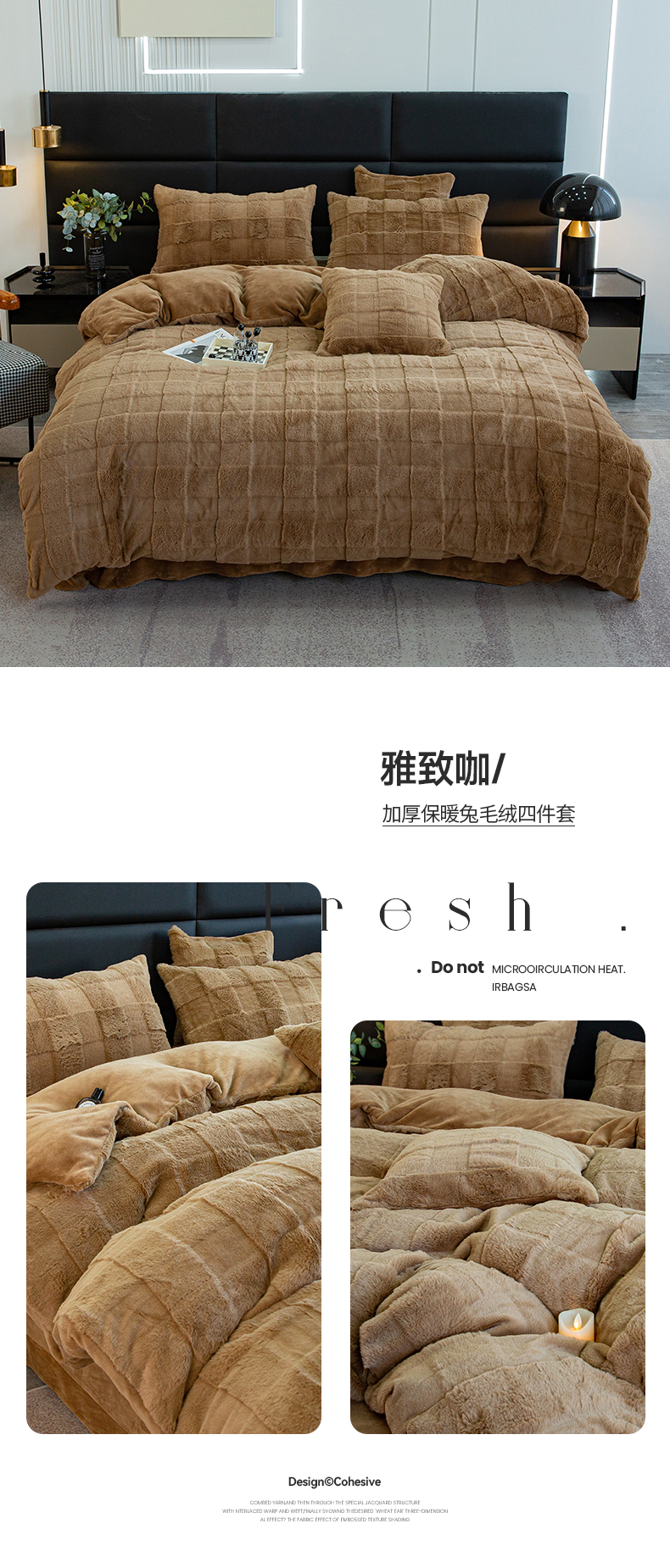 商品名称:邦妮2024新款立体兔兔绒牛奶绒四件套 雅致咖