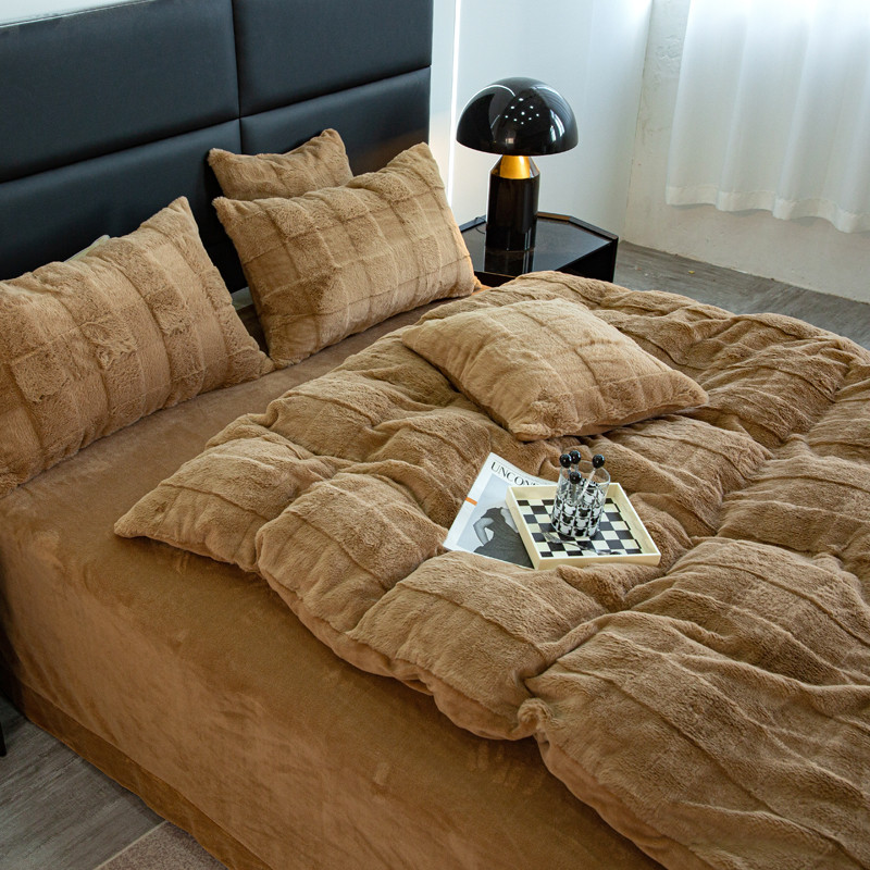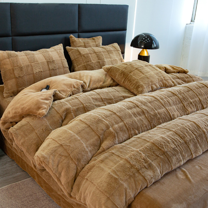 邦妮2024新款立体兔兔绒牛奶绒四件套 雅致咖