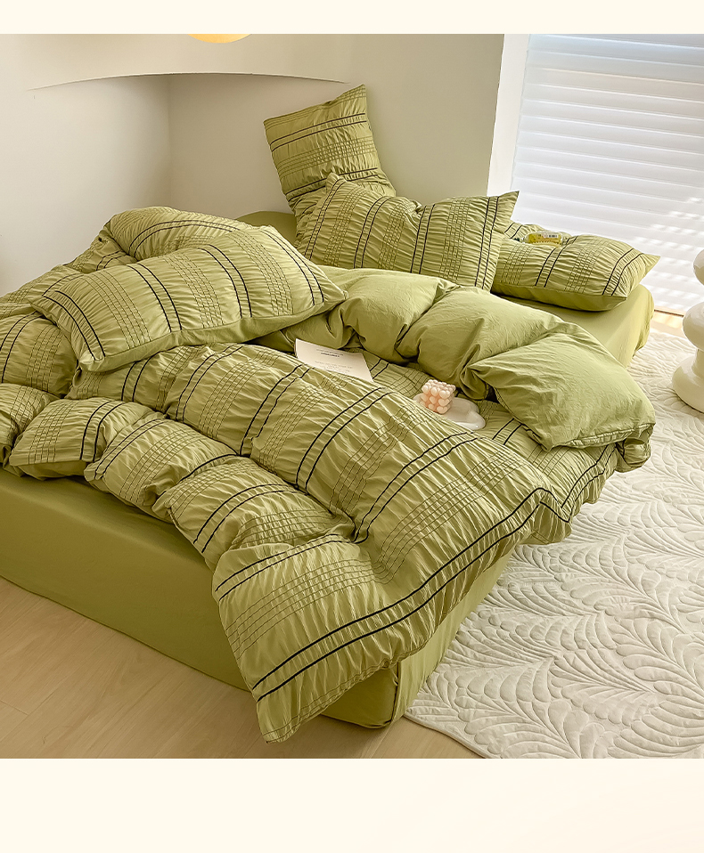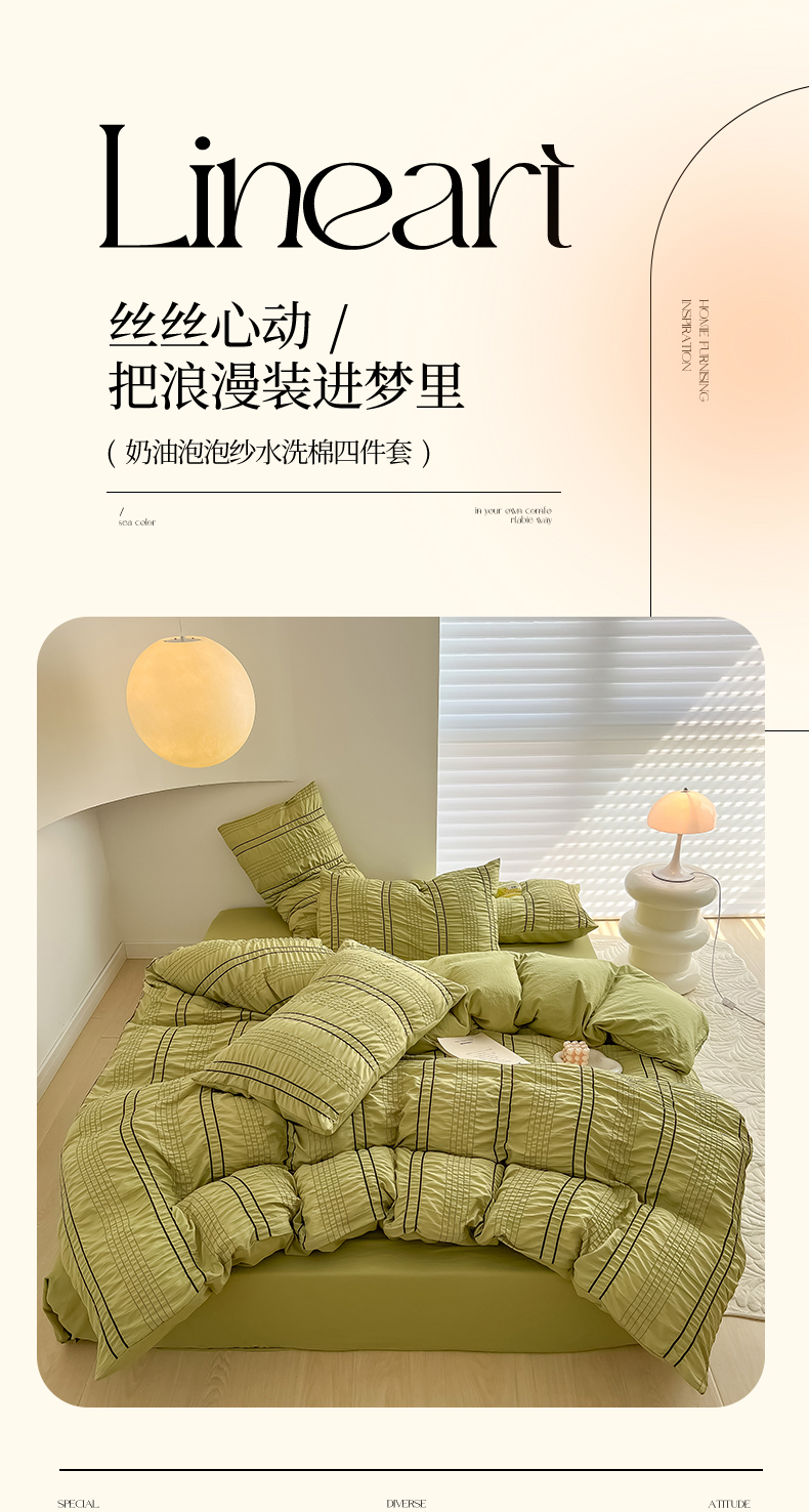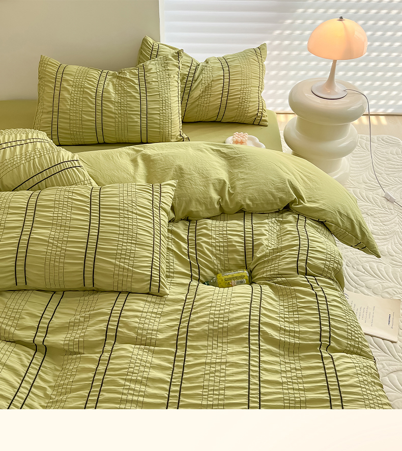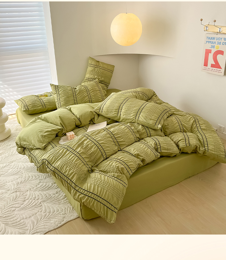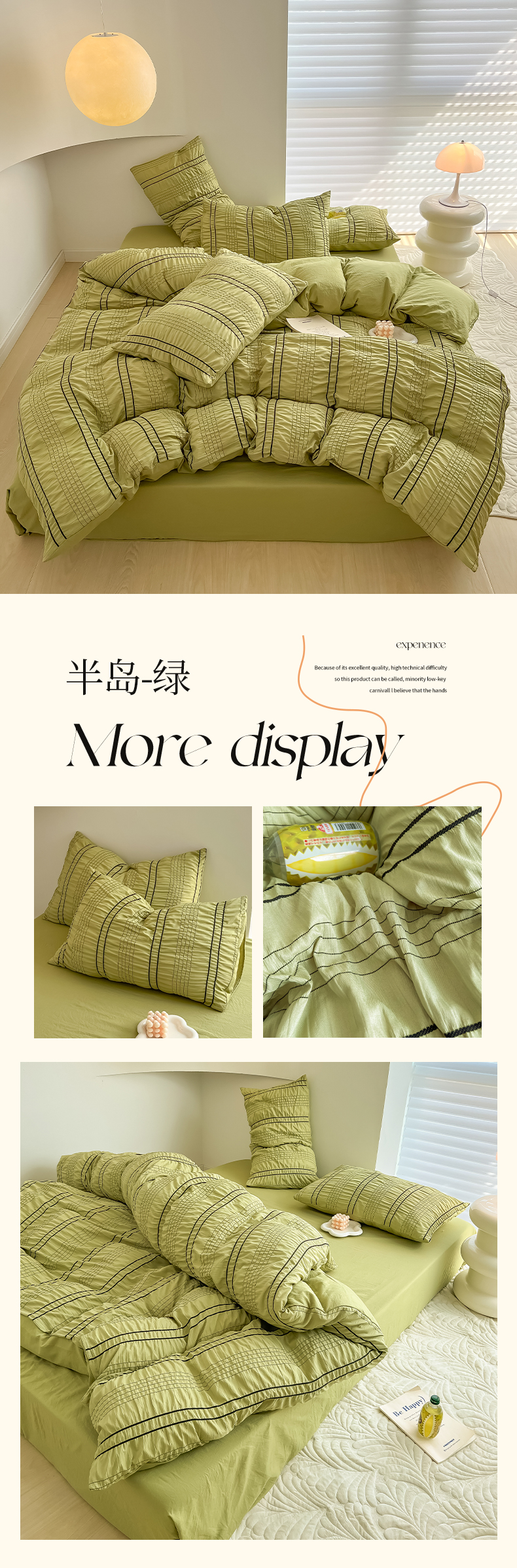 当前位置: 91家纺网 > 商品网购 > 床品套件 > 四件套 > 水洗棉四件套 > 韩都家居 2023新款A类皱皱泡泡纱水洗棉简约款纯色四件套 半岛-绿