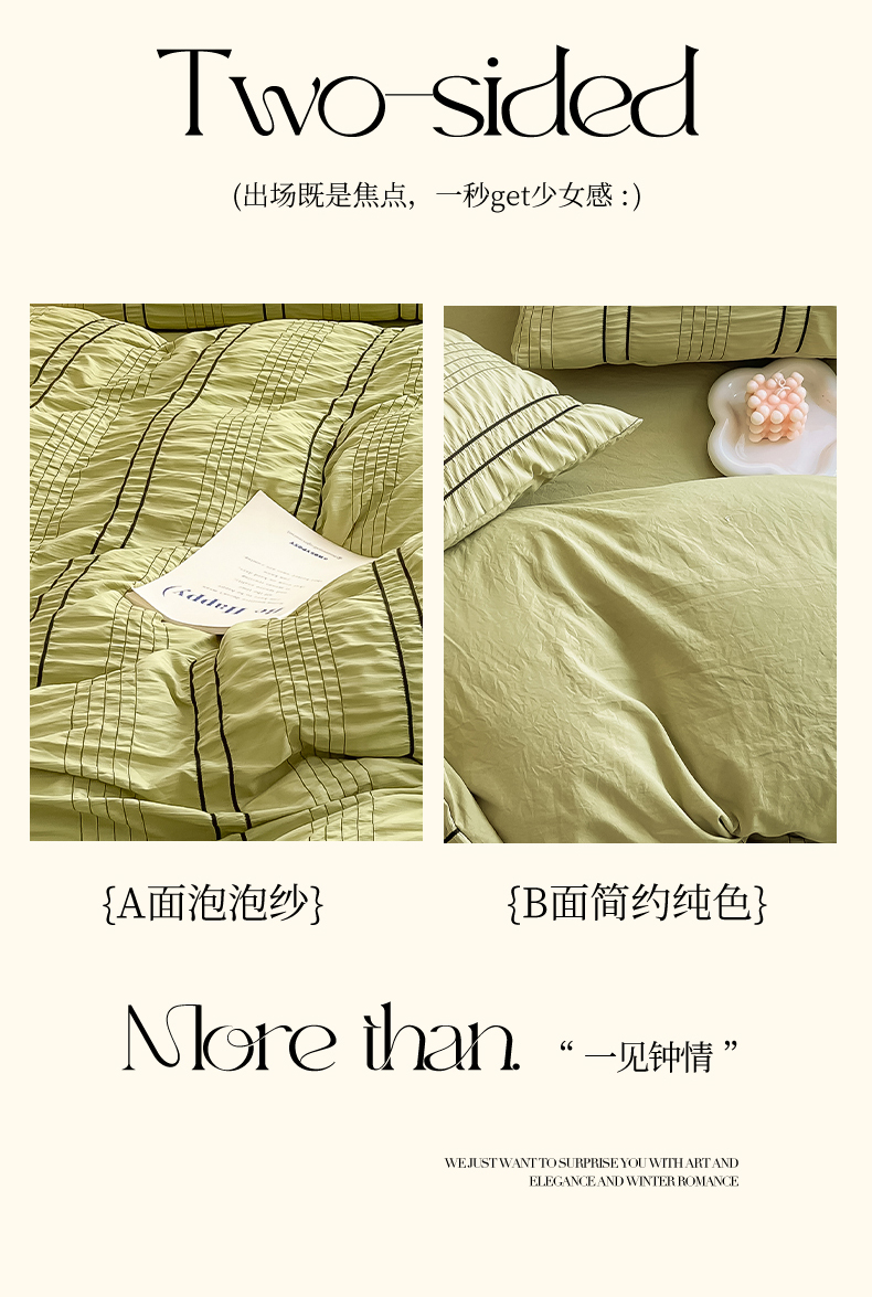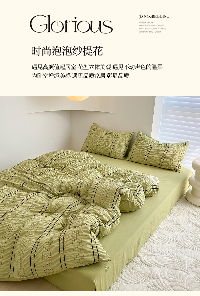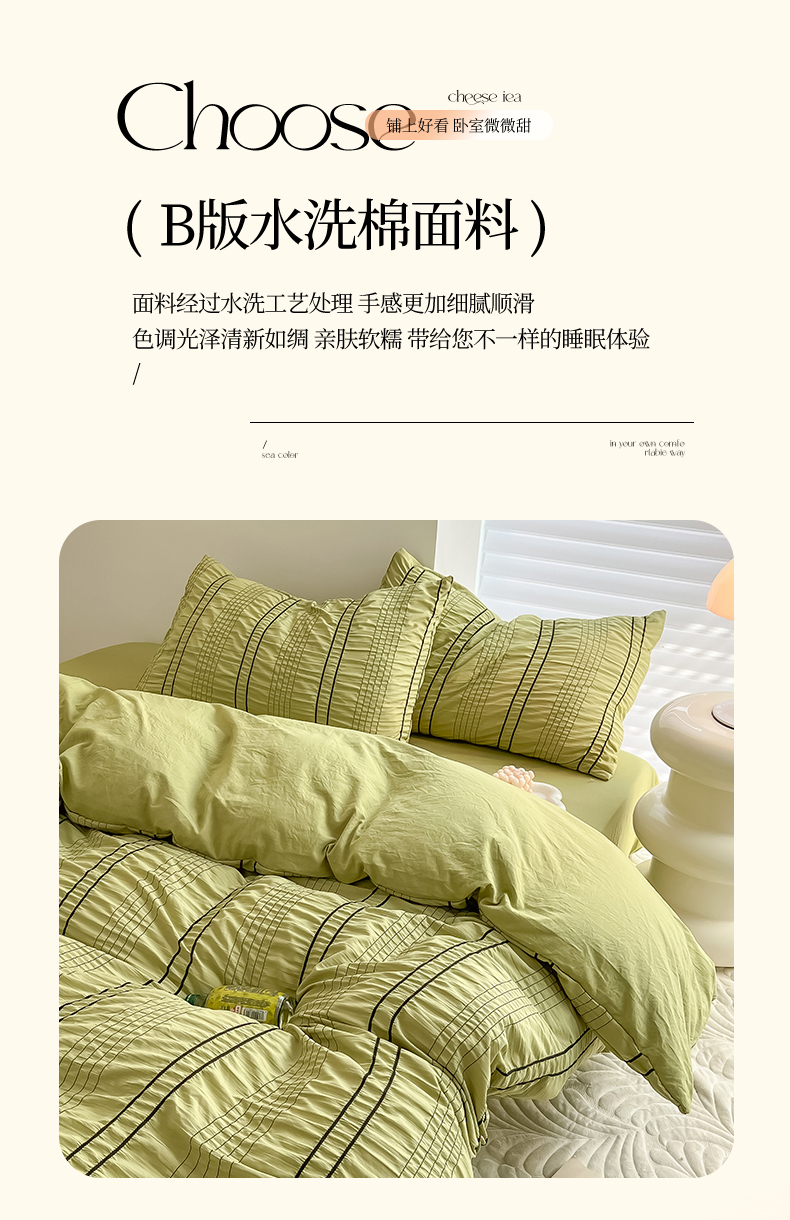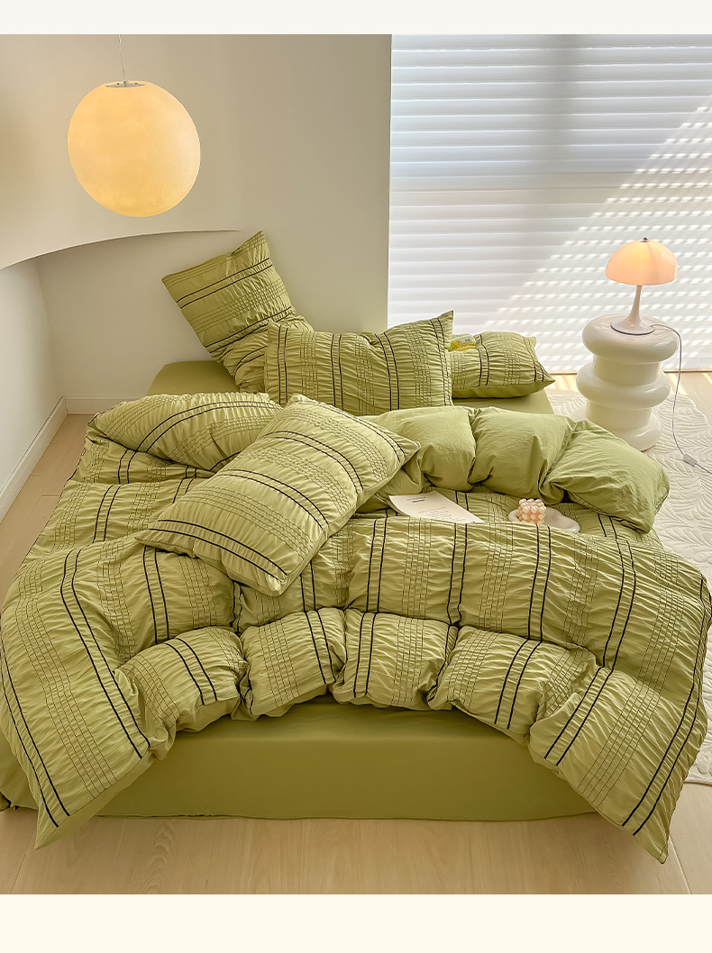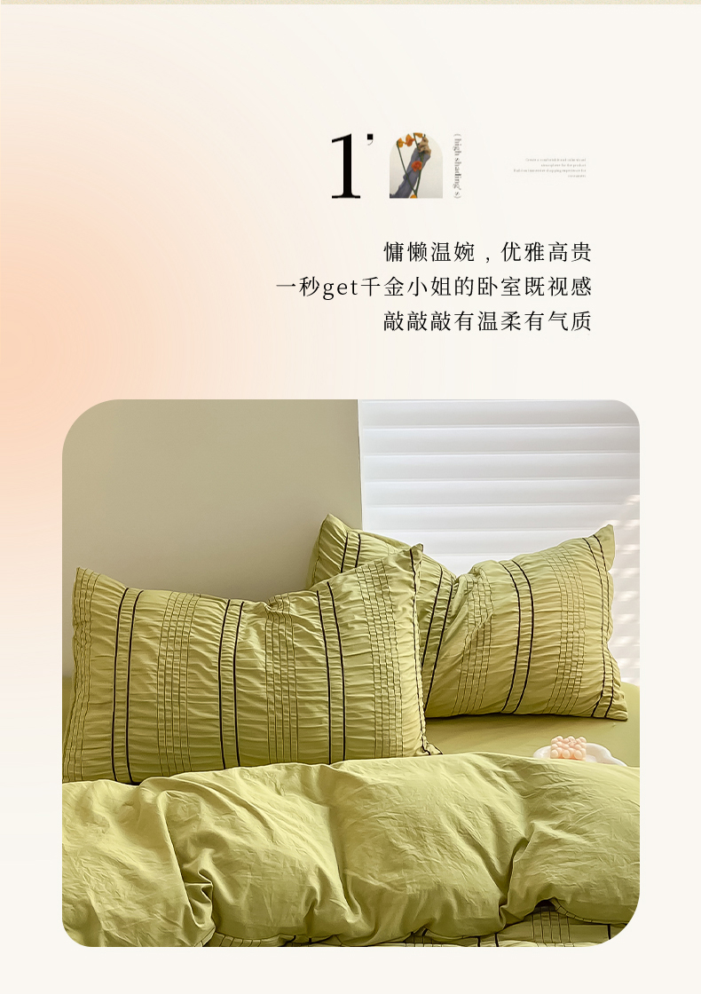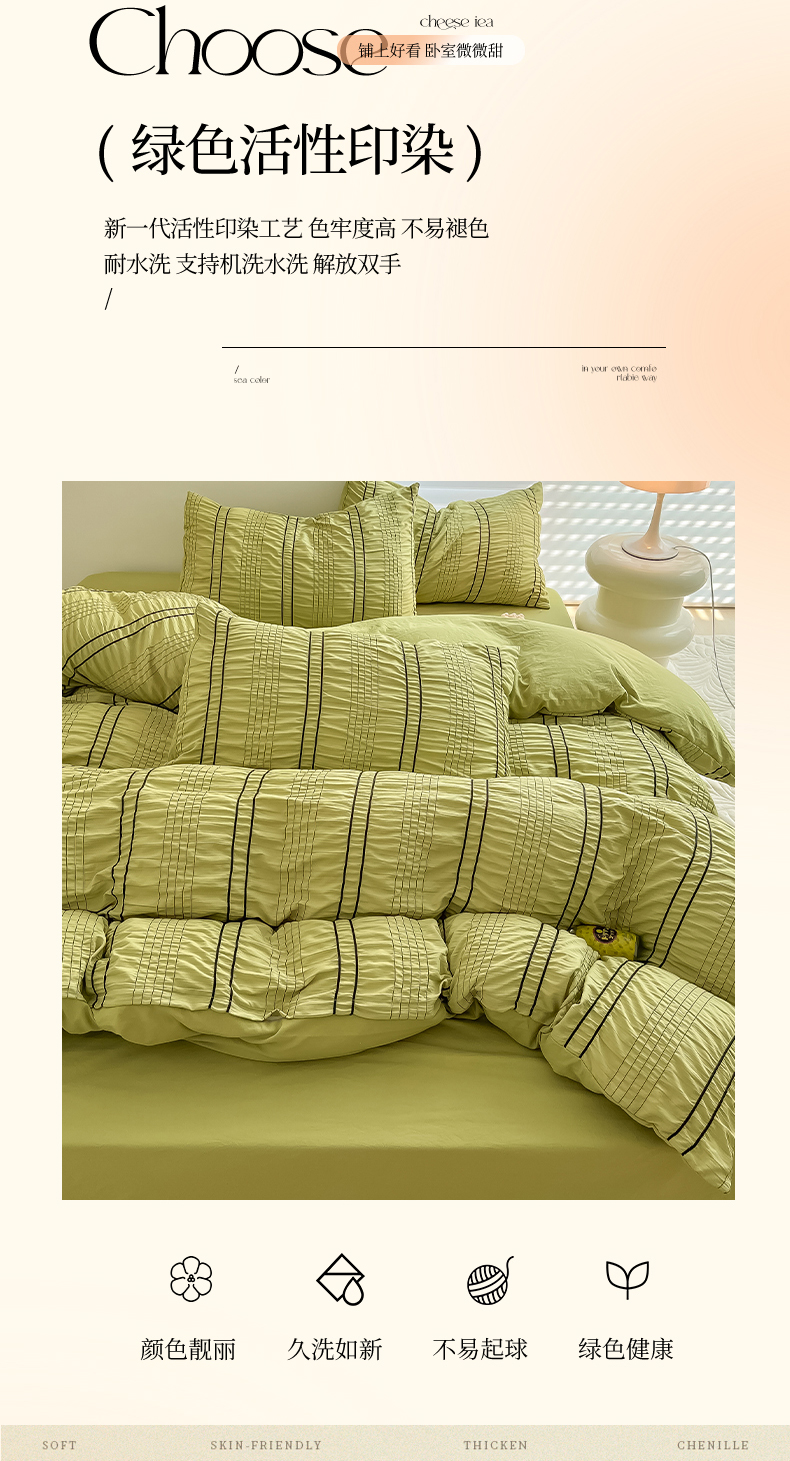 当前位置: 91家纺网 > 商品网购 > 床品套件 > 四件套 > 水洗棉四件套 > 韩都家居 2023新款A类皱皱泡泡纱水洗棉简约款纯色四件套 半岛-绿