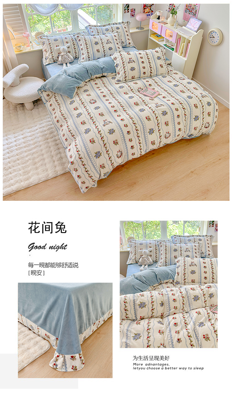 商品名称:呗旺鹿 2023新款高克重加厚印花牛奶绒四件套直播 花间兔