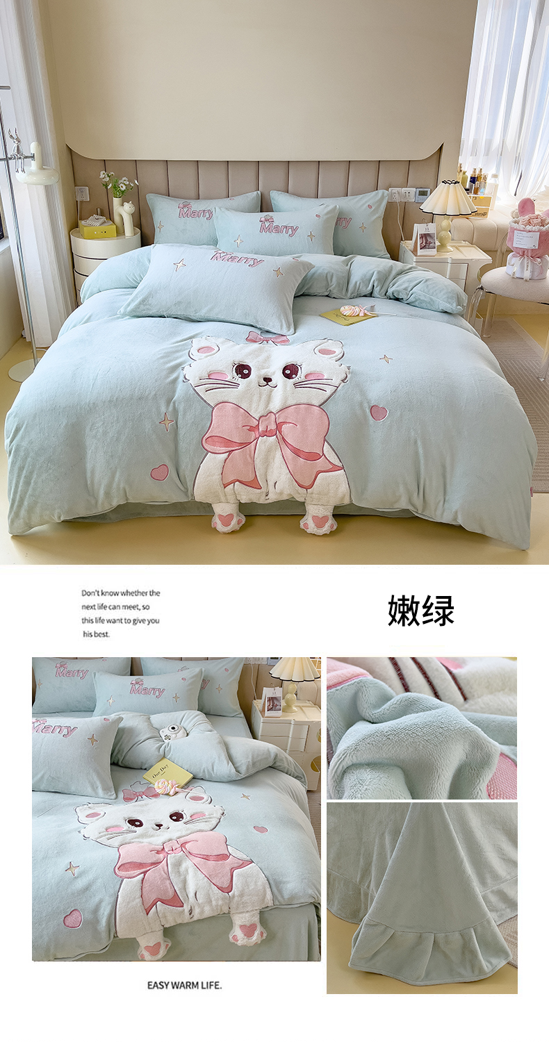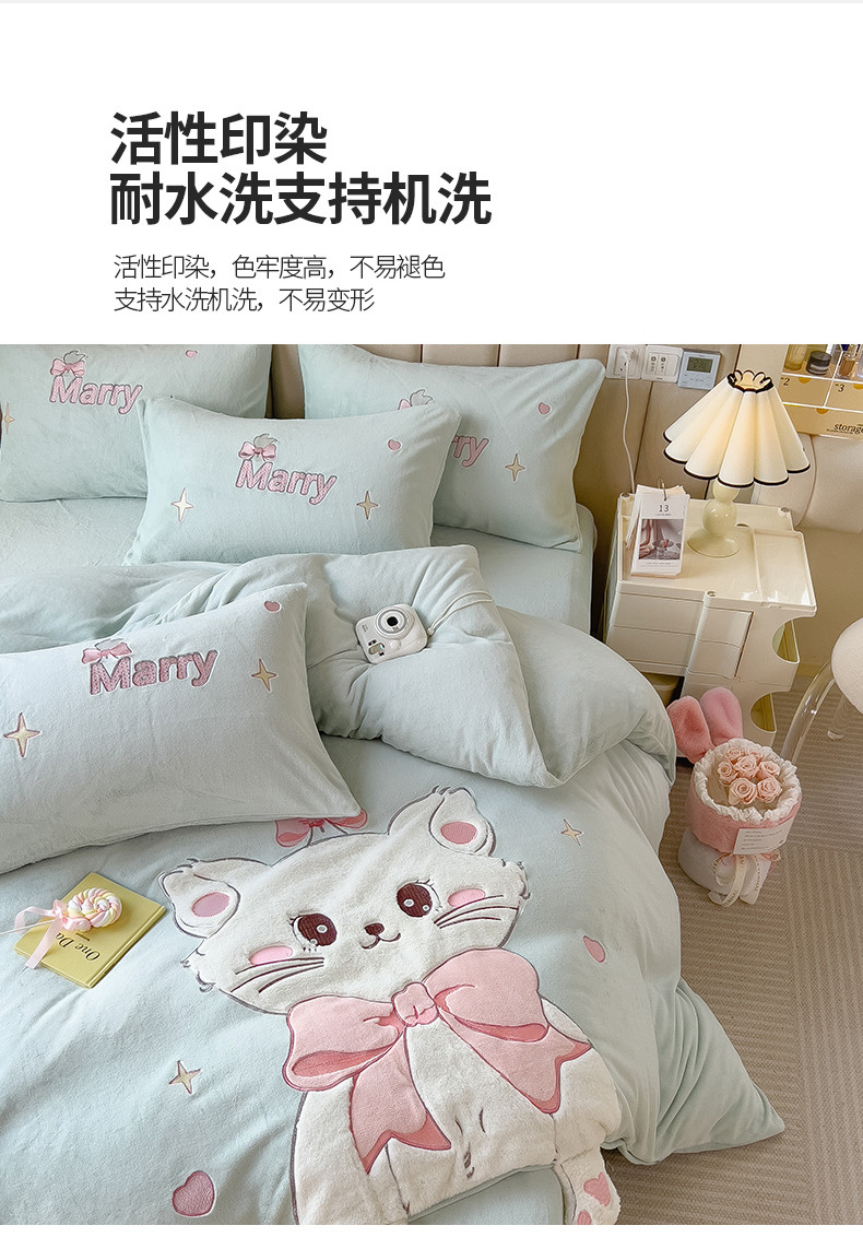 商品名称:新款牛奶绒毛绒贴布绣花保暖四件套-玛丽 玛丽-绿
