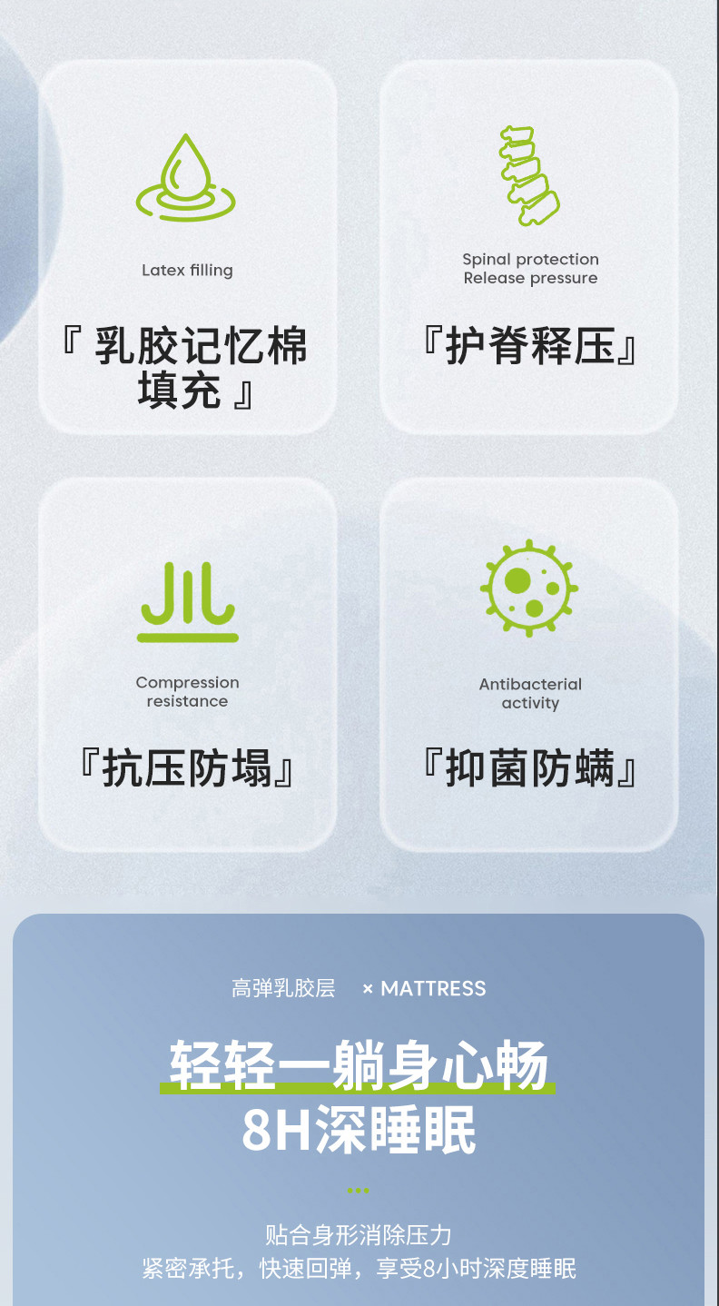 当前位置: 91家纺网 > 商品网购 > 床垫/床褥 > 普通床垫 > 缔莱 2023新款A类针织乳胶抗压记忆棉乳胶床垫-字母边款 菱形白(白)