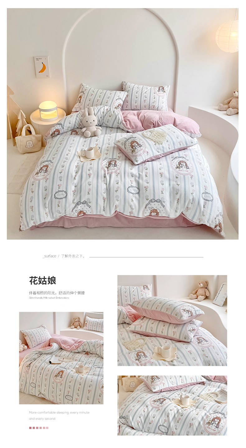 潘朵拉 2023新款秋冬ins韩系牛奶绒印花四件套 花姑娘