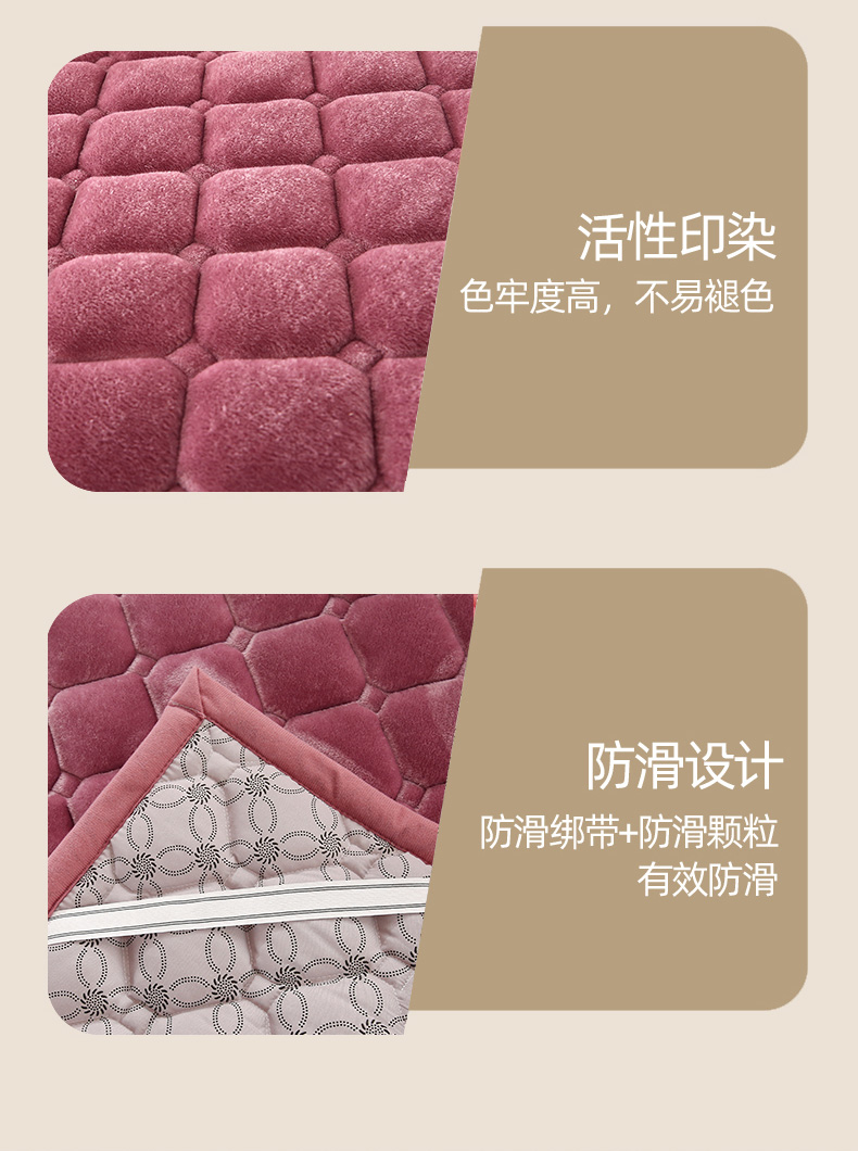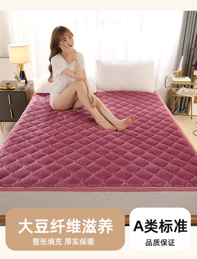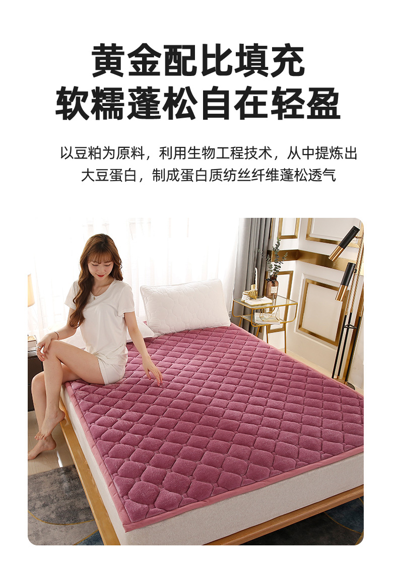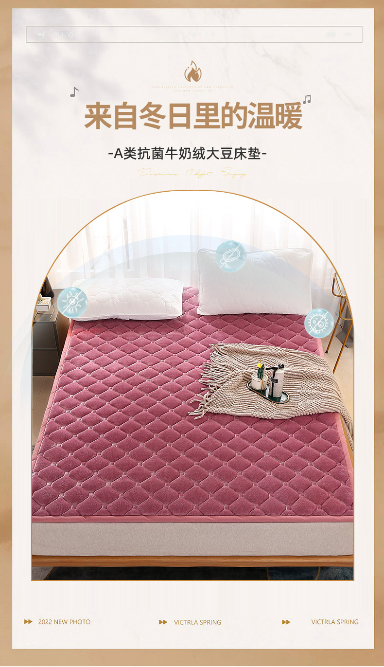 商品名称:东宇 2024年新款A类抗菌牛奶绒大床加厚床垫 豆沙