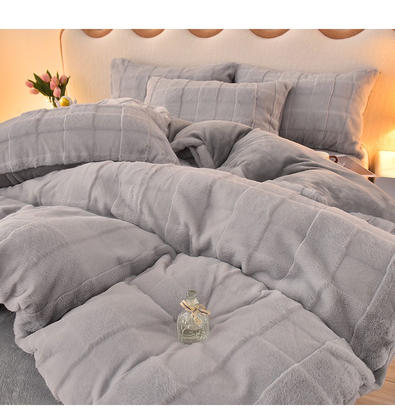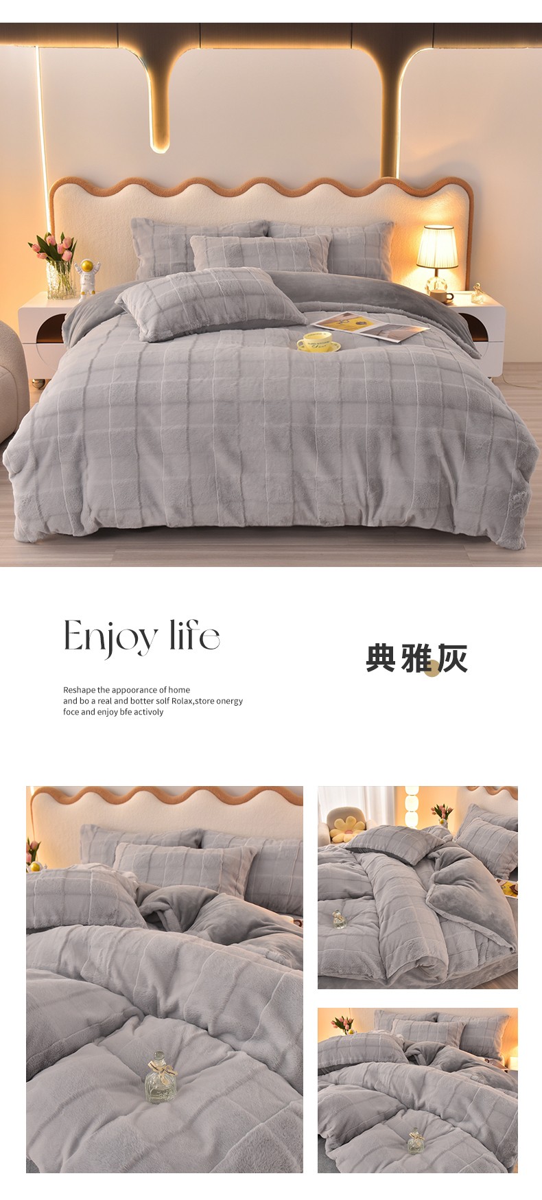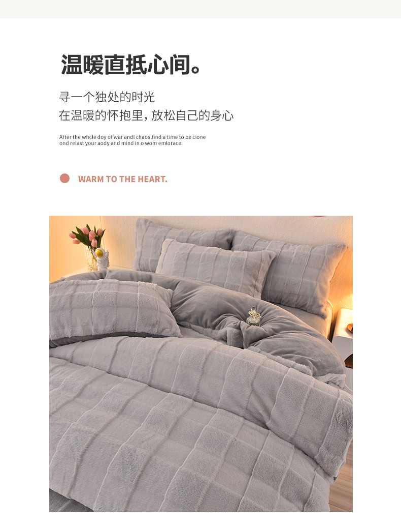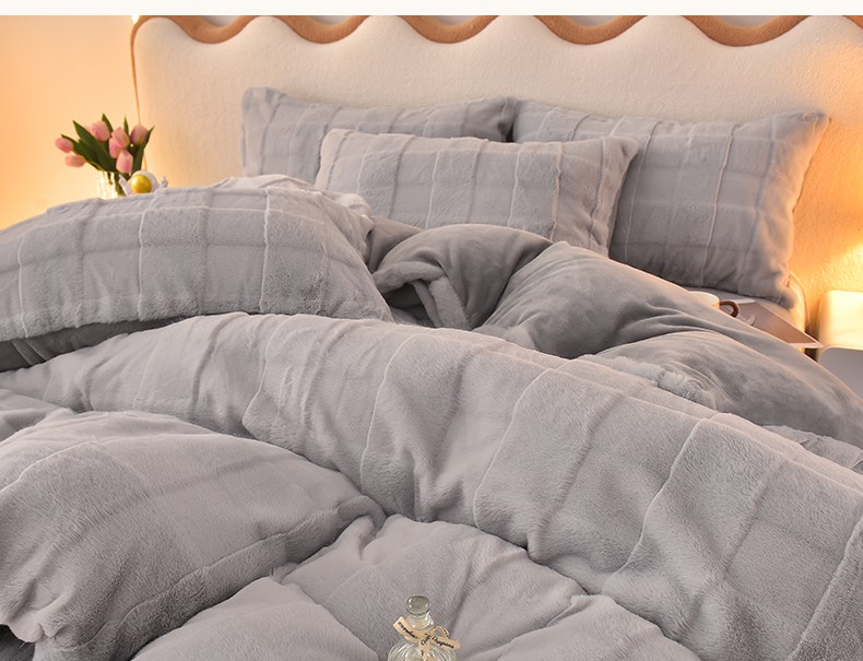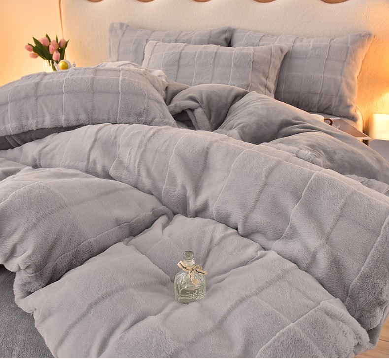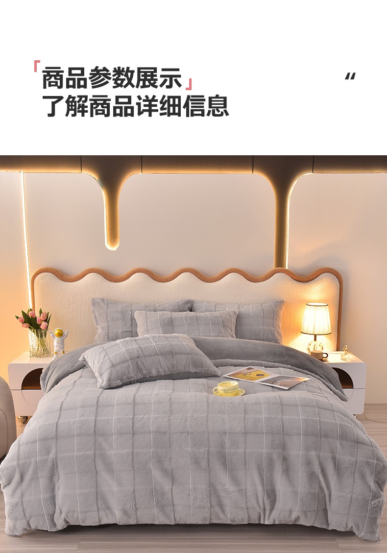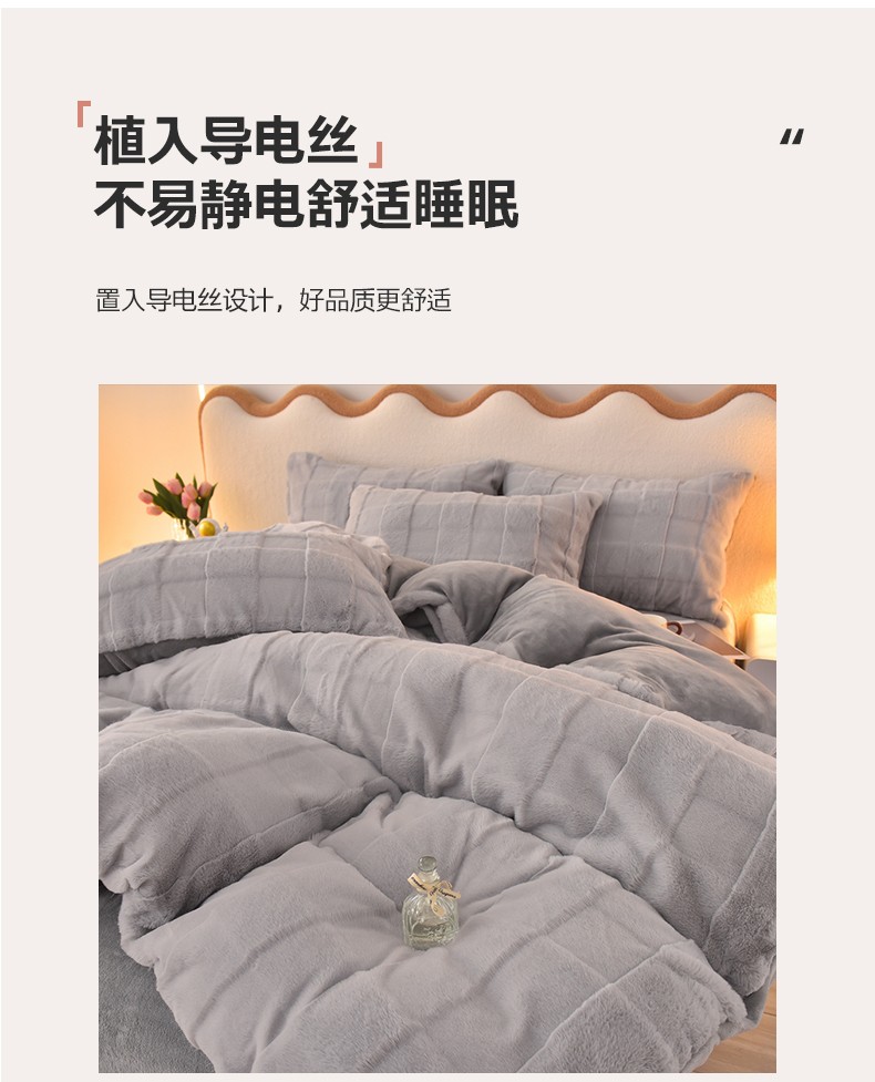 商品名称:畅畅家纺 2023新款兔毛绒兔兔绒懒兔绒立体剪花牛奶绒四件套 典雅灰