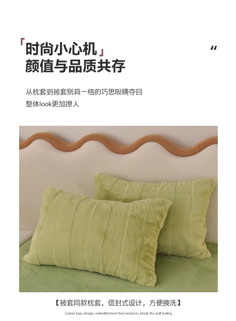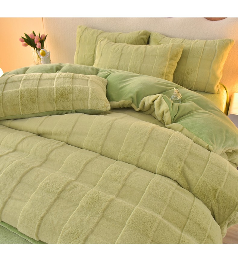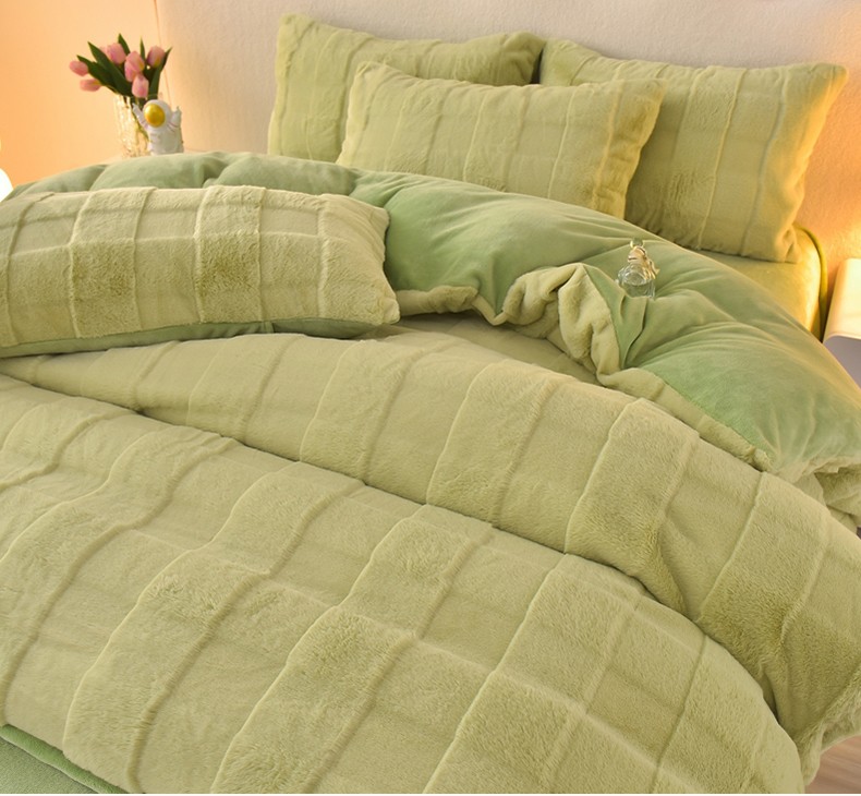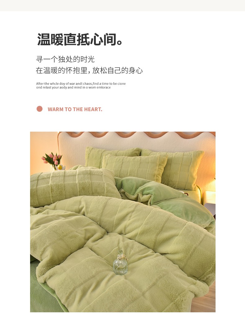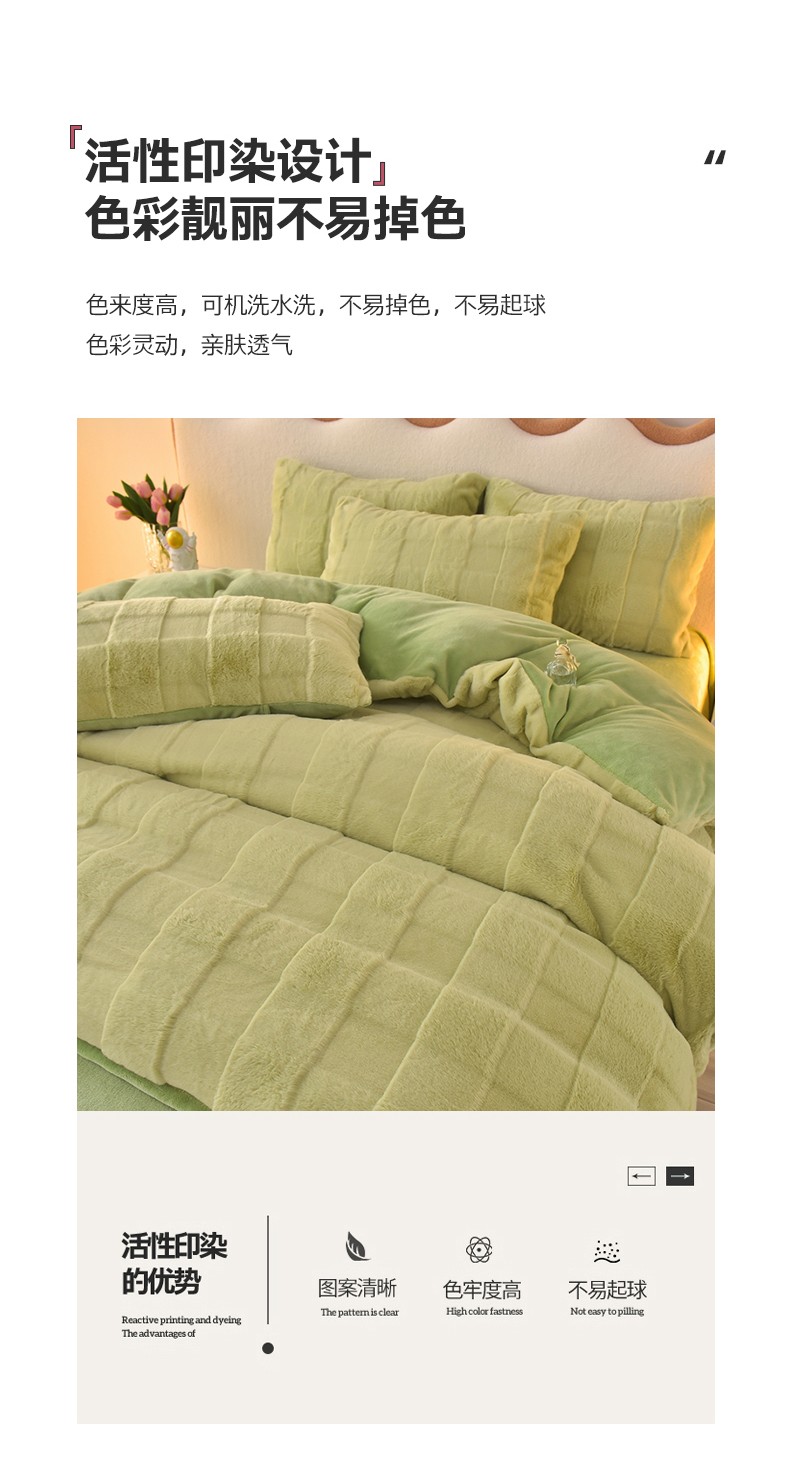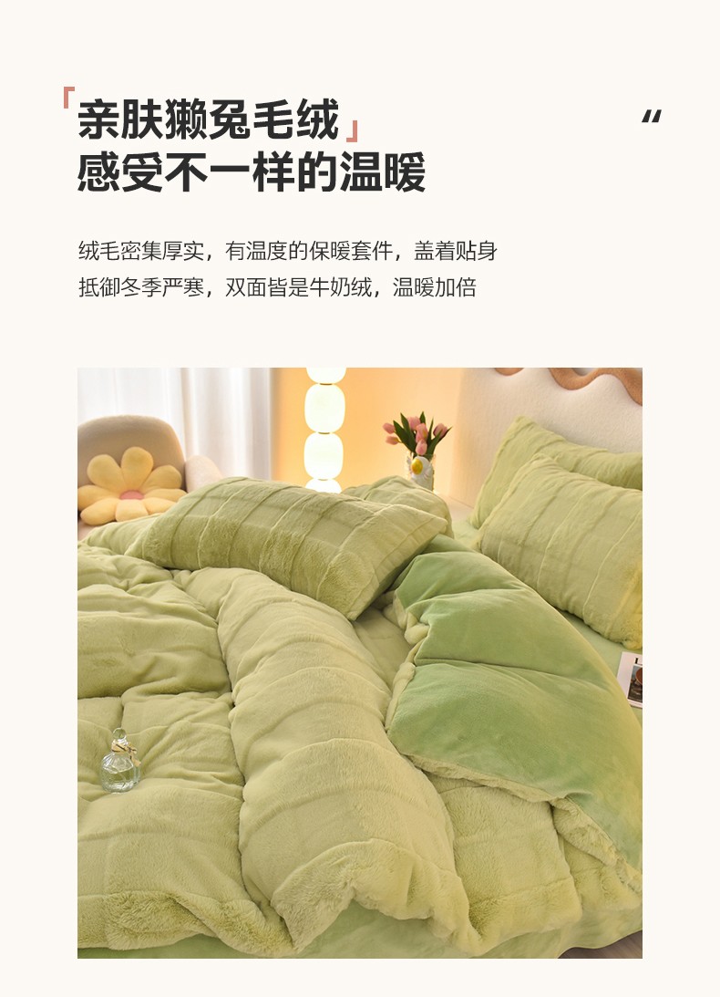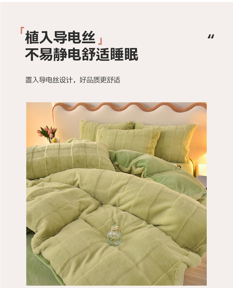商品名称:畅畅家纺 2023新款兔毛绒兔兔绒懒兔绒立体剪花牛奶绒四件套 山茶绿