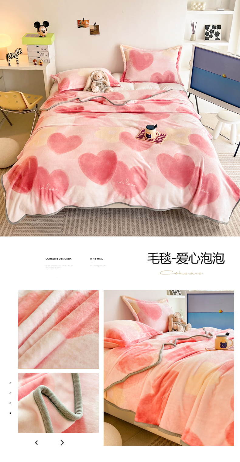当前位置: 91家纺网 > 商品网购 > 床品套件 > 三件套 > 寐居家纺 2023新款双面牛奶绒毛毯 毛毯-爱心泡泡