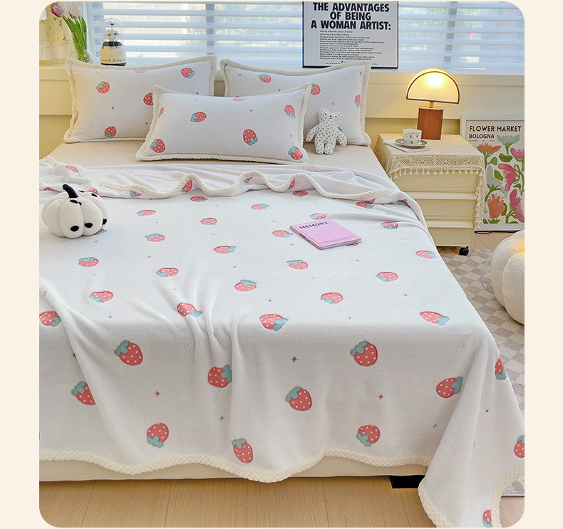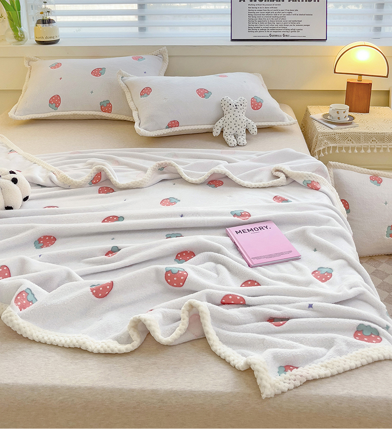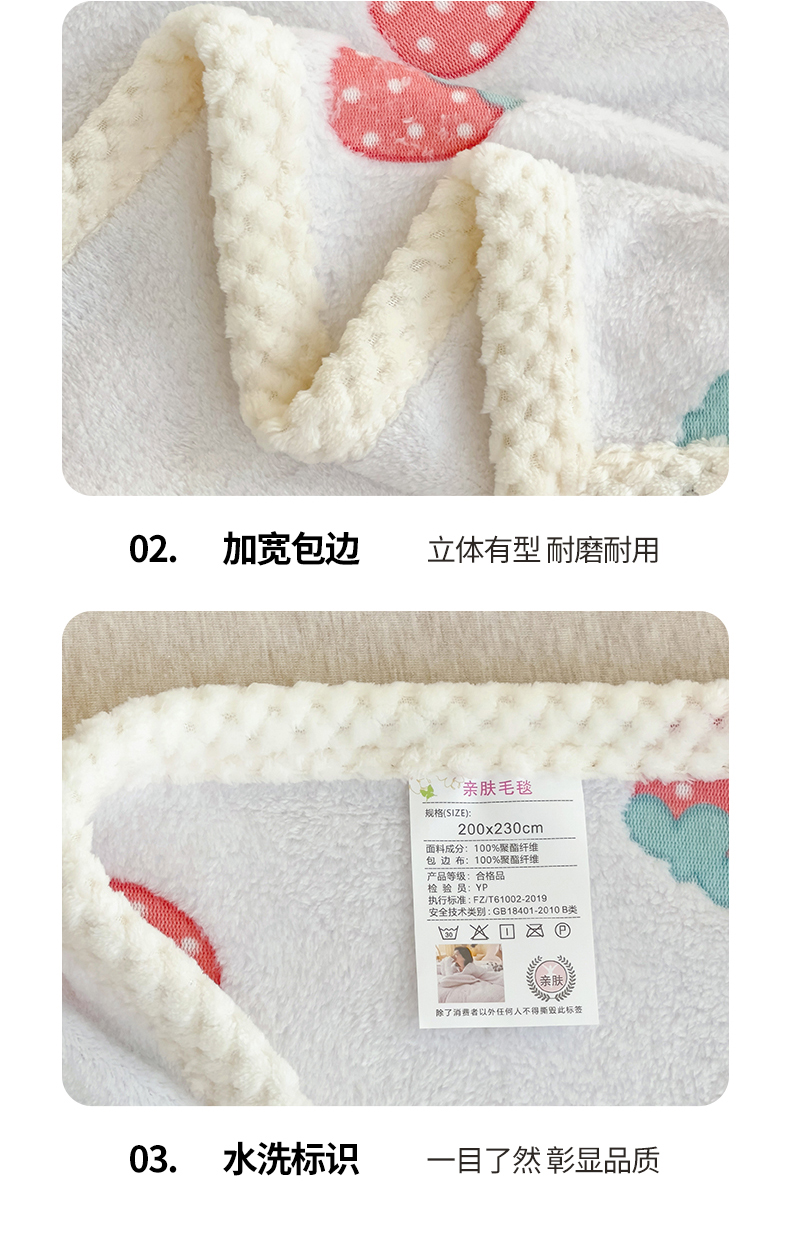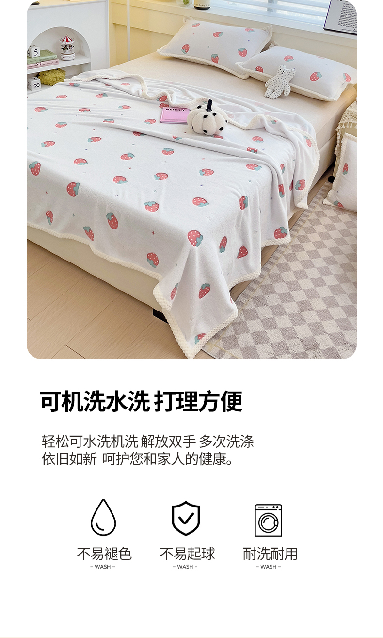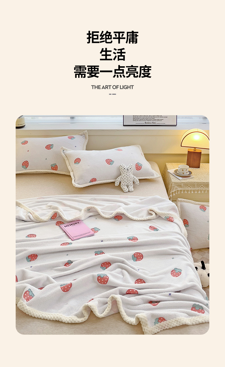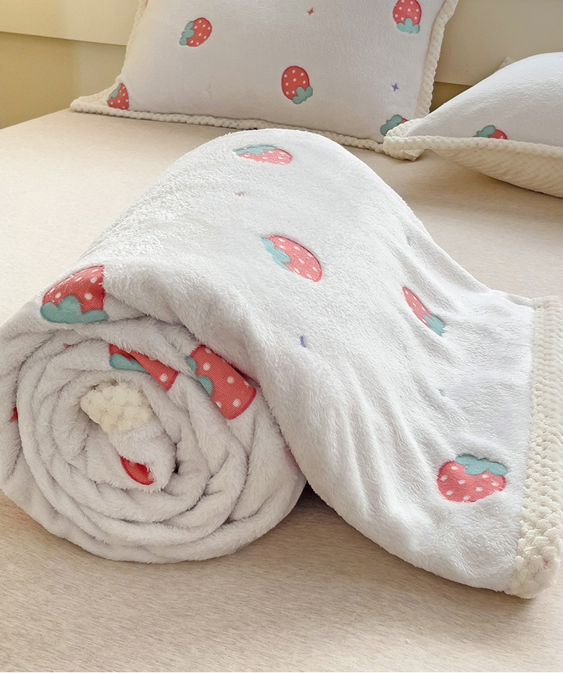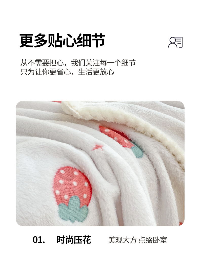 商品名称:宜派家纺 2023新款压花云朵绒多功能毛毯 草莓白