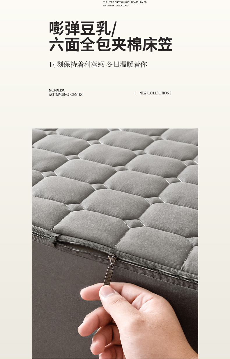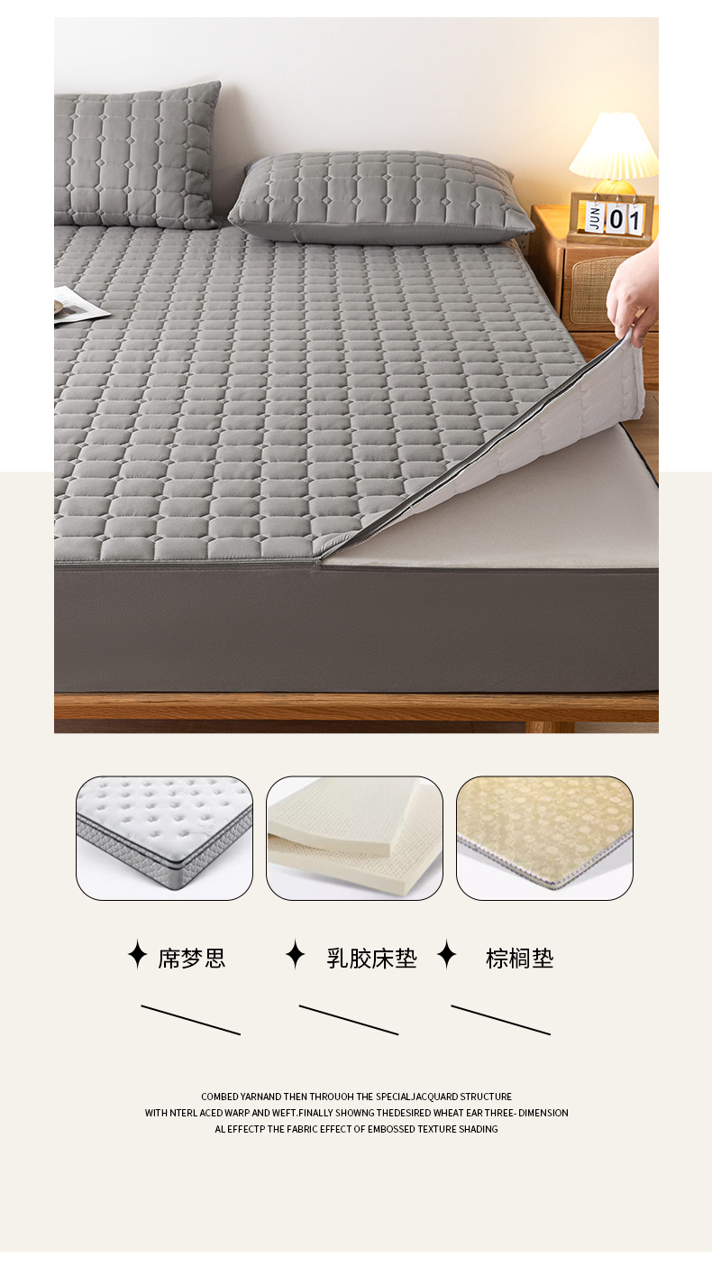 • 91家纺网 家纺一手货源 找家纺 (总)糯米猪家纺 2025春夏新款亲肤棉六面全包防水压花床笠单件单床笠,组合图仅供展示,典雅白,高级灰,静谧绿,浅卡其,水雾蓝,樱花粉