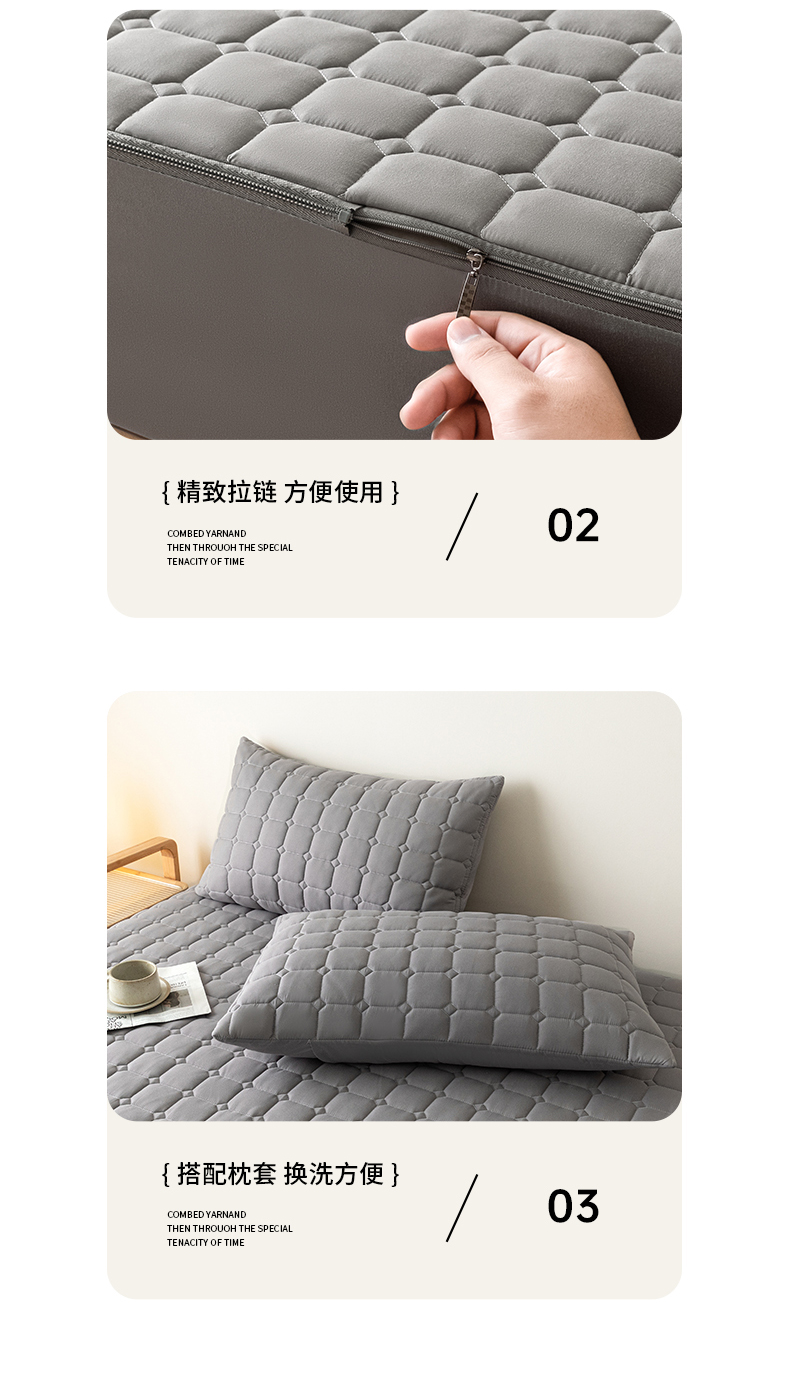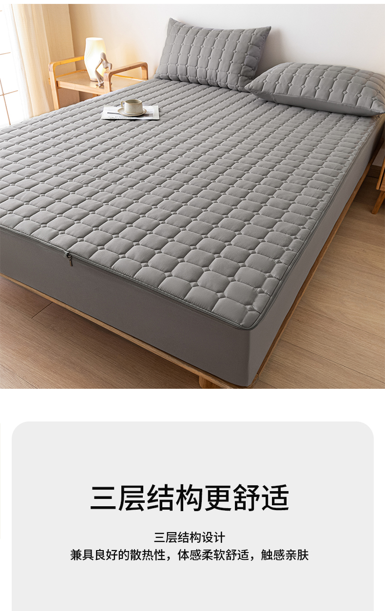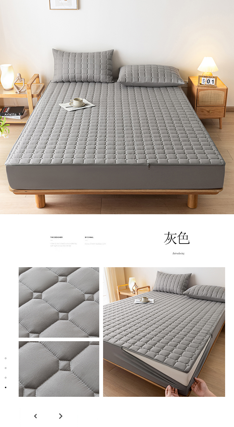 • 91家纺网 家纺一手货源 找家纺 糯米猪家纺 2023新款亲肤棉六面全包夹棉床笠--时尚格 灰色