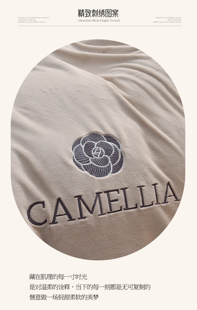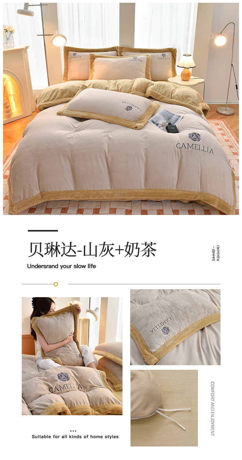 笙意 新款加厚牛奶绒刺绣四件套-贝琳达系列 贝琳达-山灰+奶茶