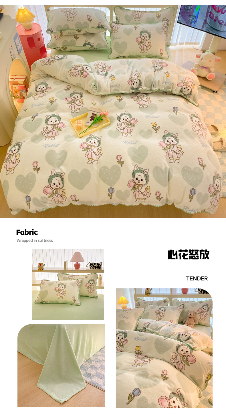 当前位置: 91家纺网 > 商品网购 > 床品套件 > 四件套 > 牛奶绒四件套 > 安哆啦家纺 2024新款牛奶绒三角针四件套 心花怒放