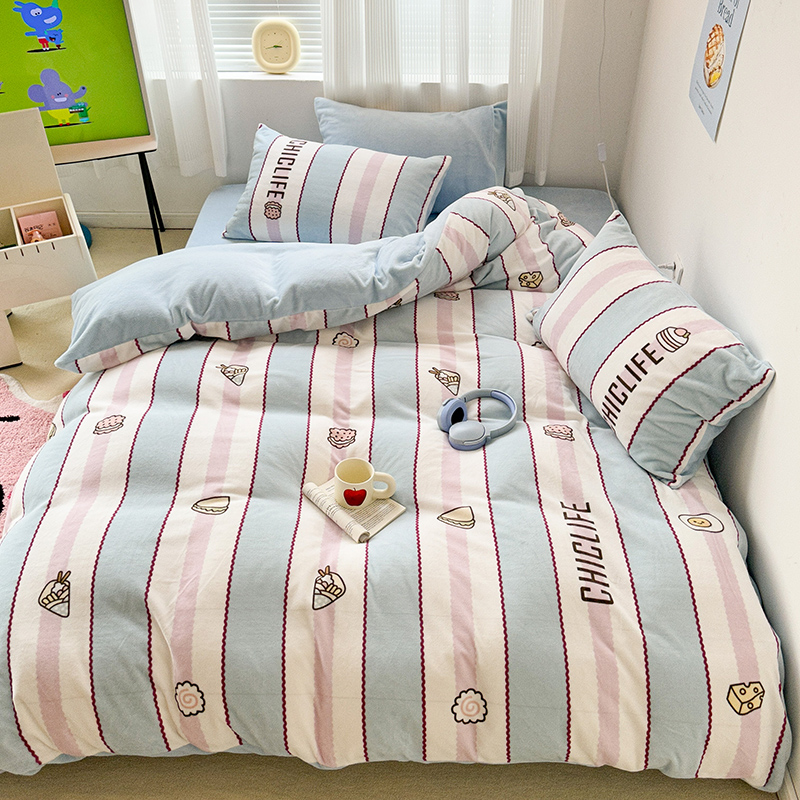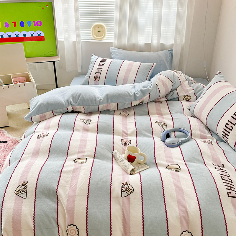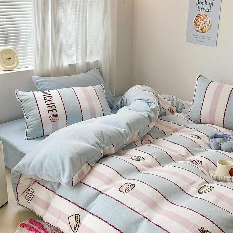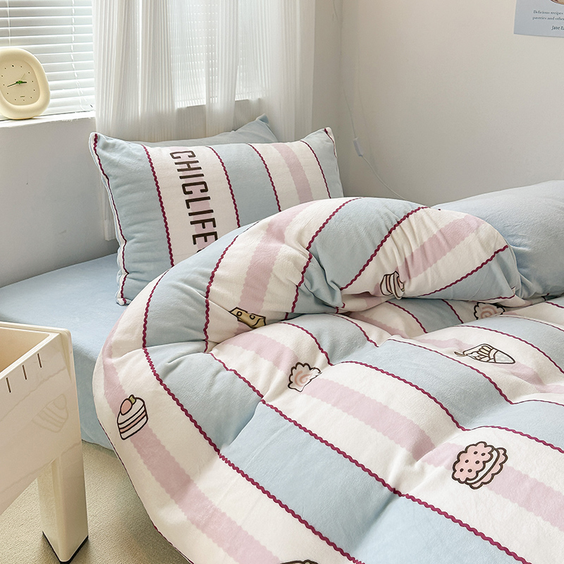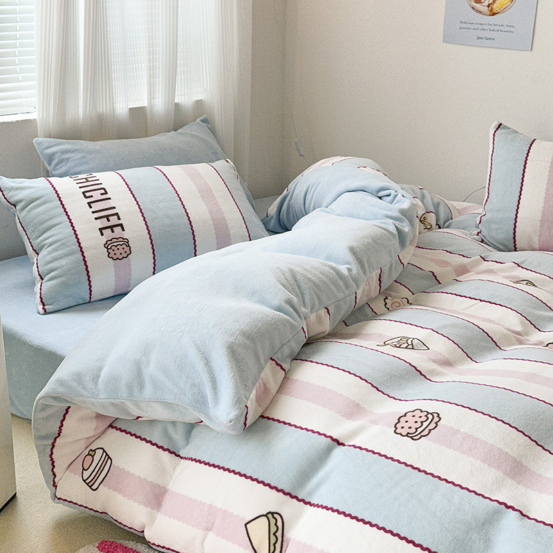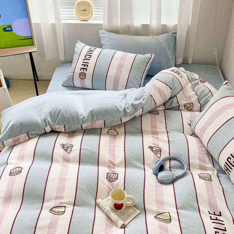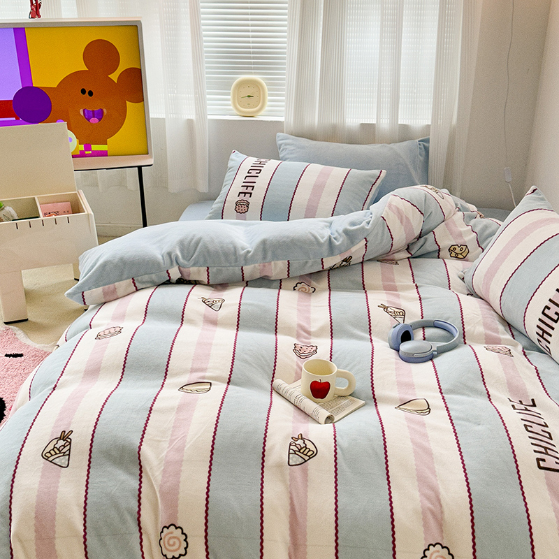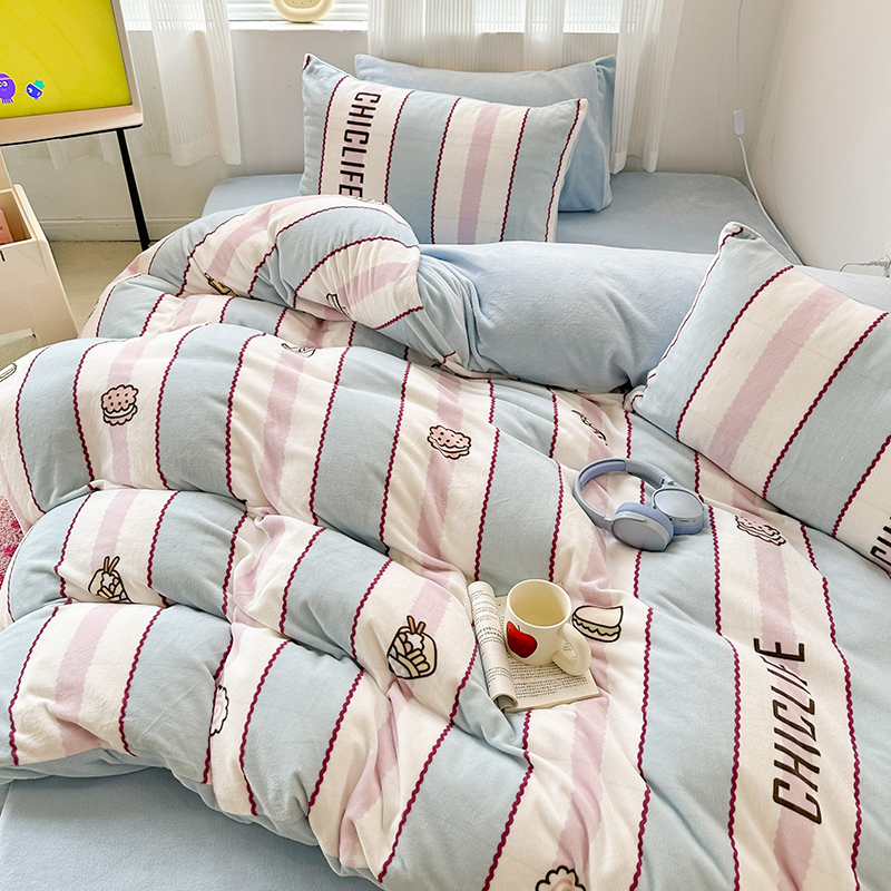(总)昔可家纺 2024新款印花牛奶绒四件套系列-洛丽塔风,萝莉小兔,小熊烘焙屋,小熊玩偶屋