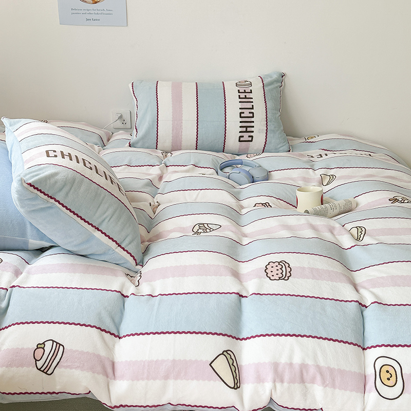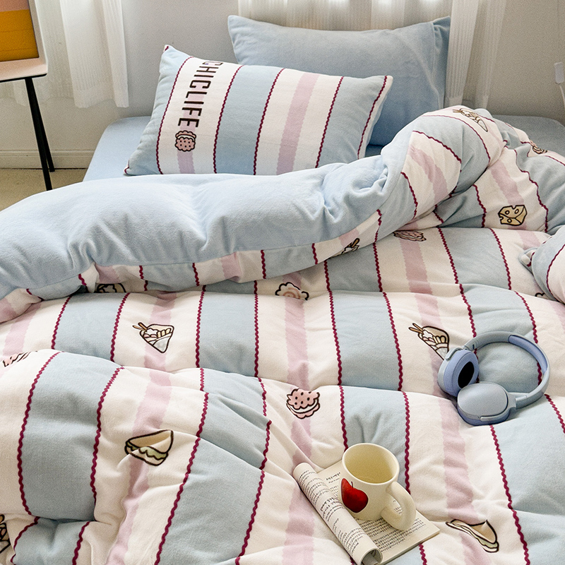 昔可家纺 2023新款大版数码印花保暖牛奶绒四件套 美食派对